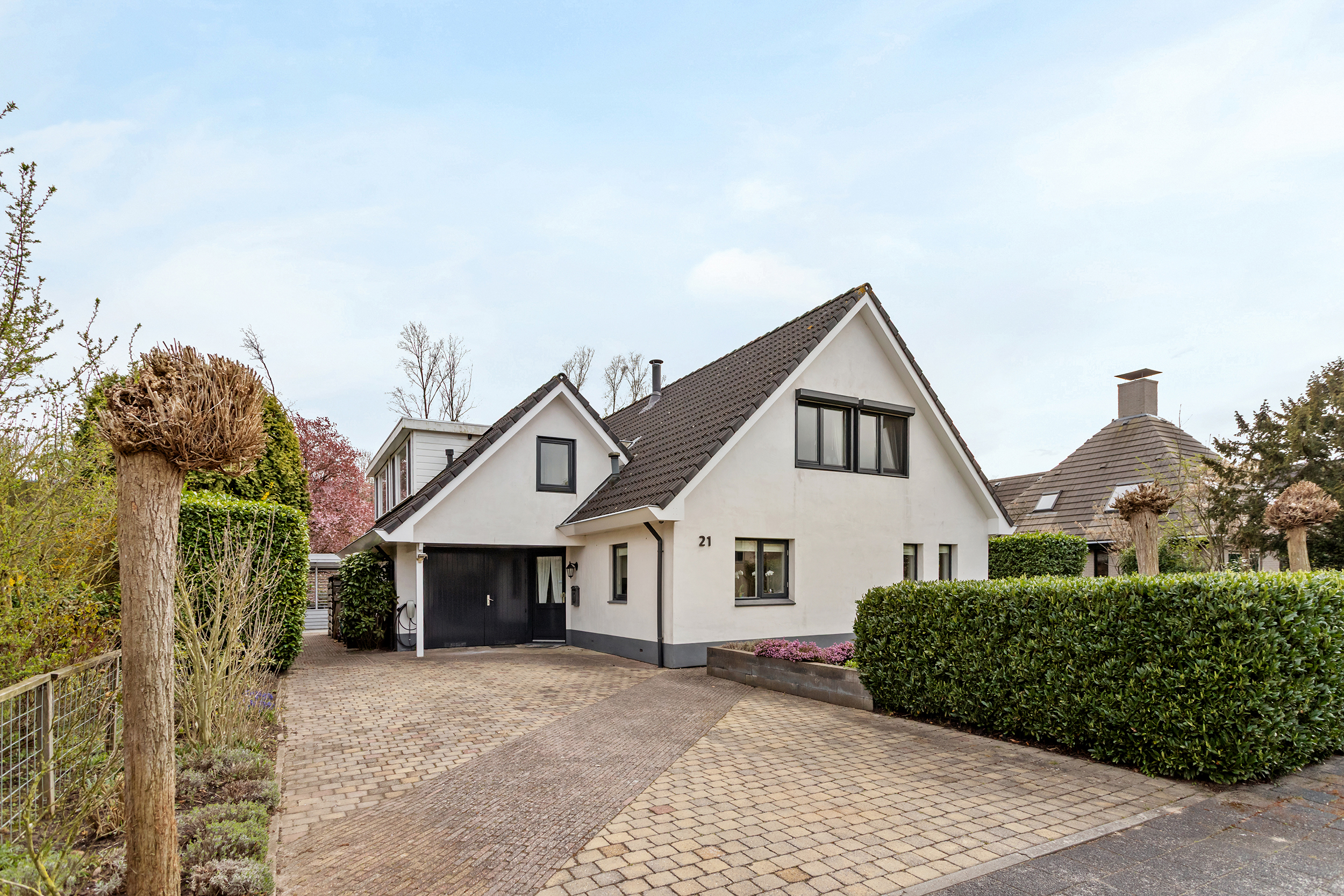 Ook aan de voorzijde maakt de woning direct indruk. De ruime oprit biedt plek aan meerdere auto’s en zorgt voor een prettige entree. Hier bevindt zich ook een laadpaal voor elektrisch rijden.