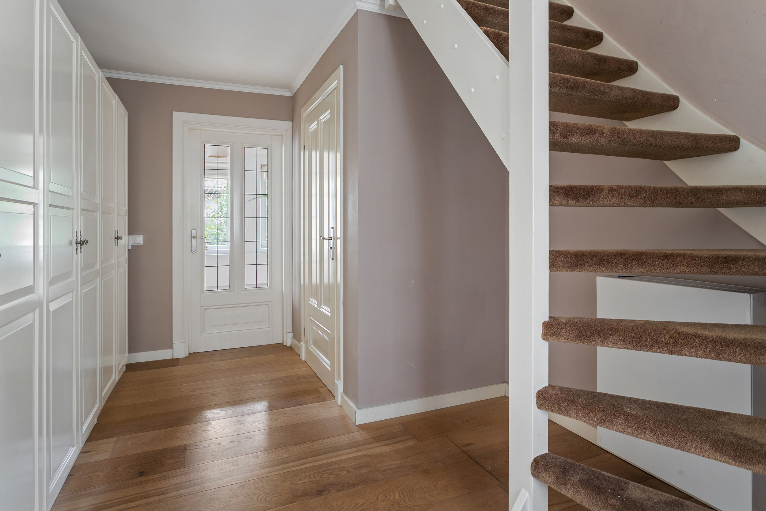 Bij binnenkomst in de hal heb je toegang tot het toilet, de woonkamer en de trap naar de eerste verdieping.