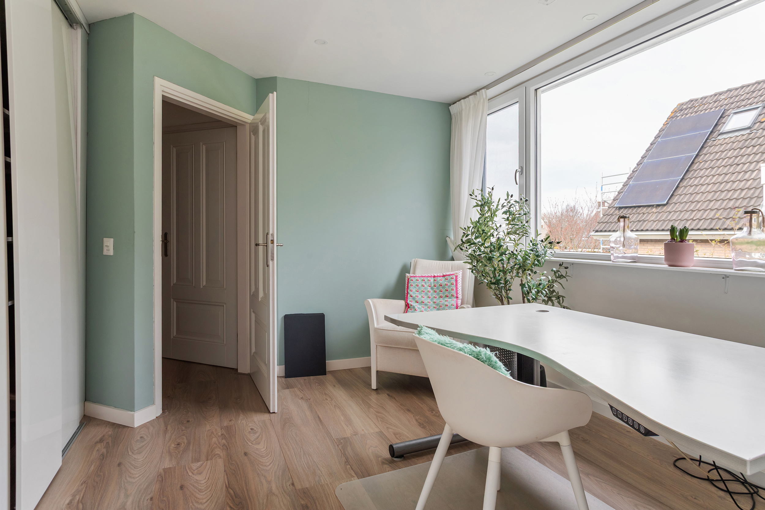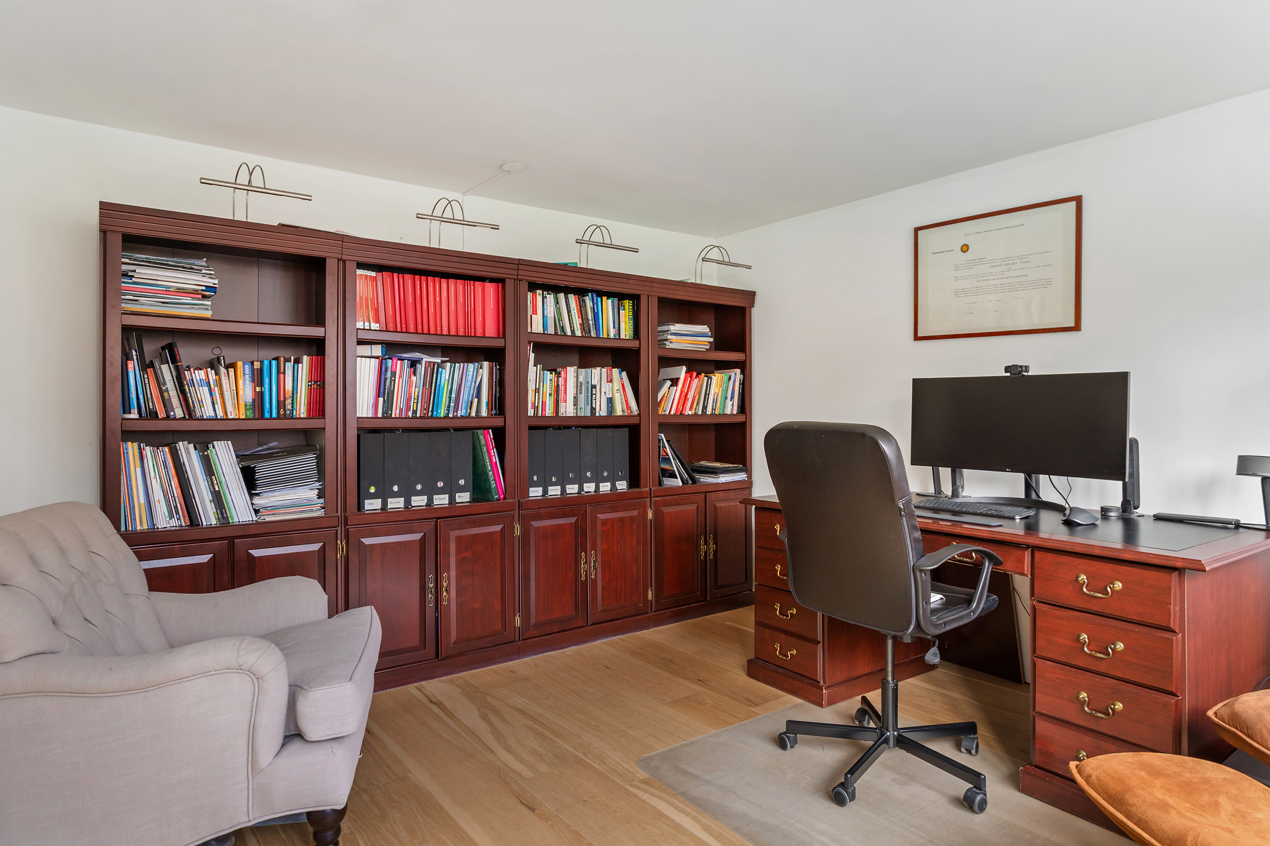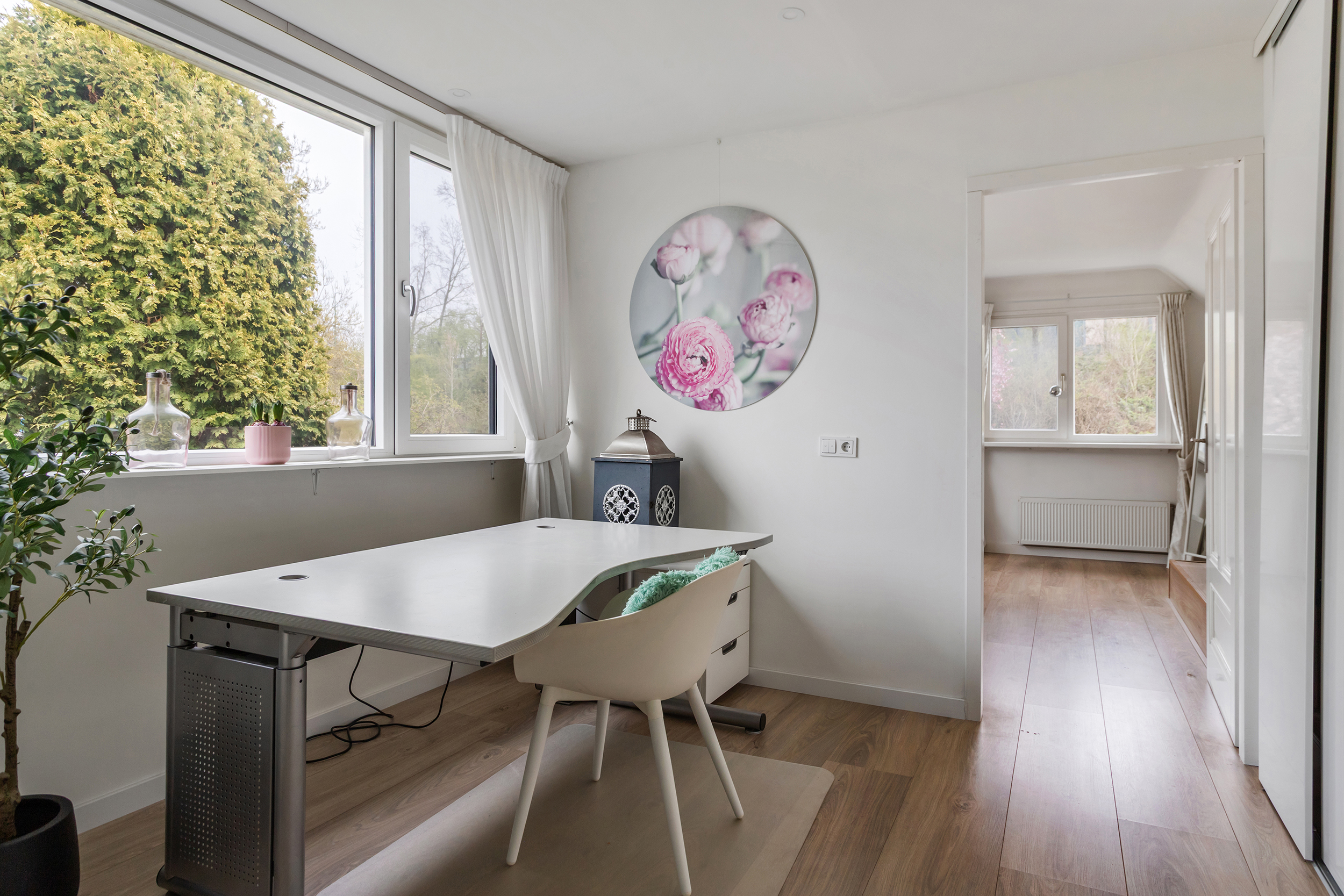 Aan de achterzijde van de woning bevindt zich het separate kantoor. Een representatieve en volwaardige ruimte, ideaal voor werken aan huis of als rustige plek om je terug te trekken.