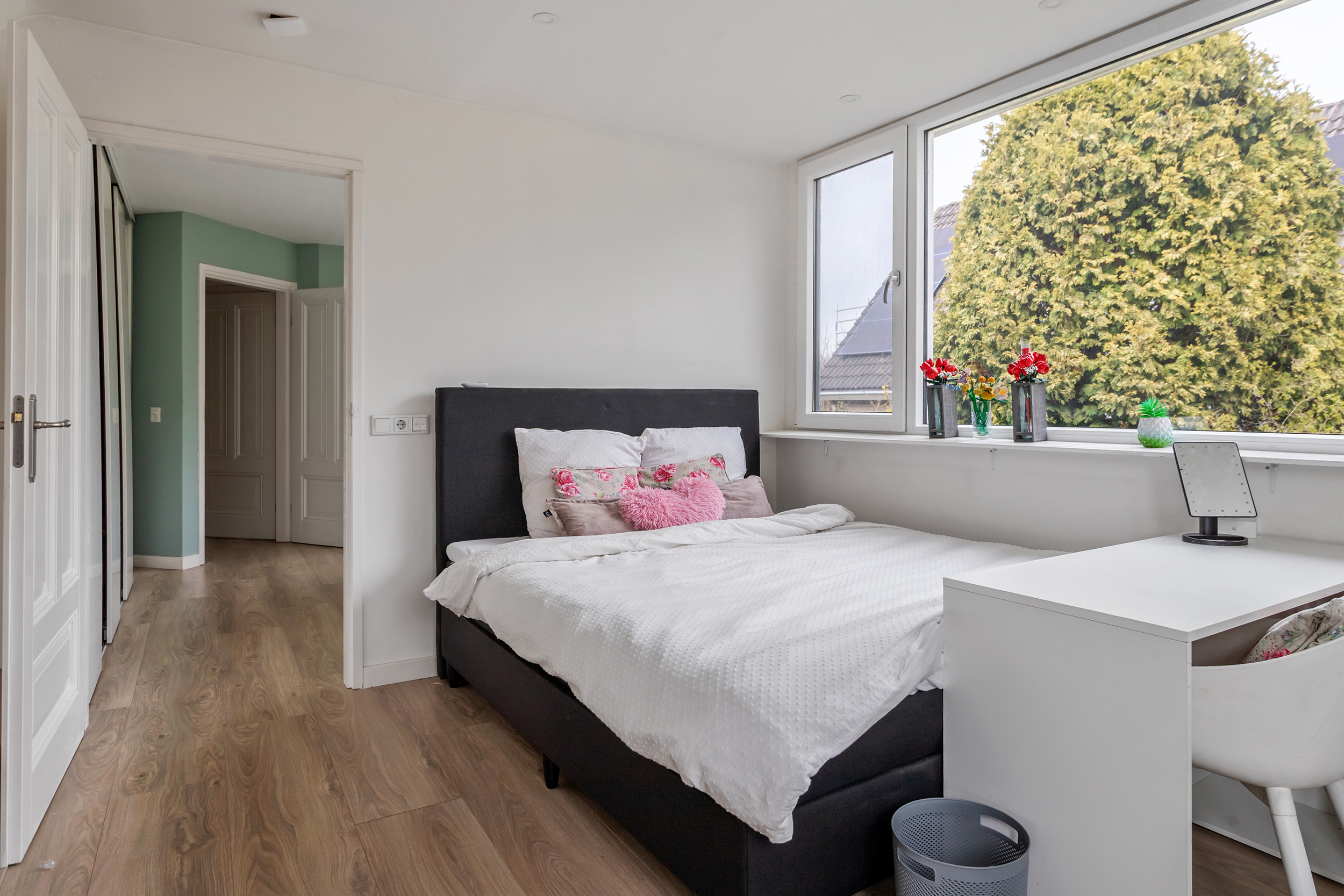 Daarnaast zijn er nog vier lichte slaapkamers, stuk voor stuk van goed formaat. Twee van deze kamers beschikken eveneens over ingebouwde kasten.