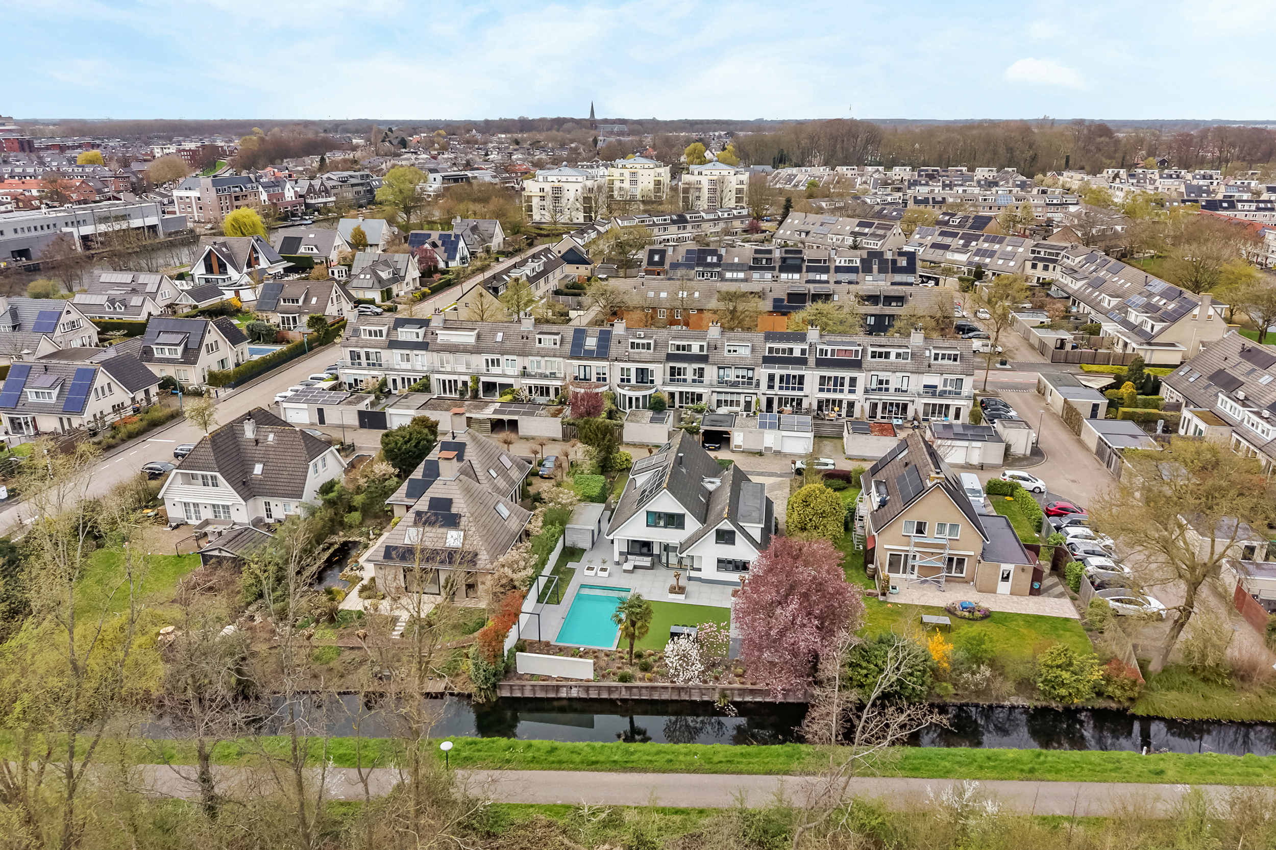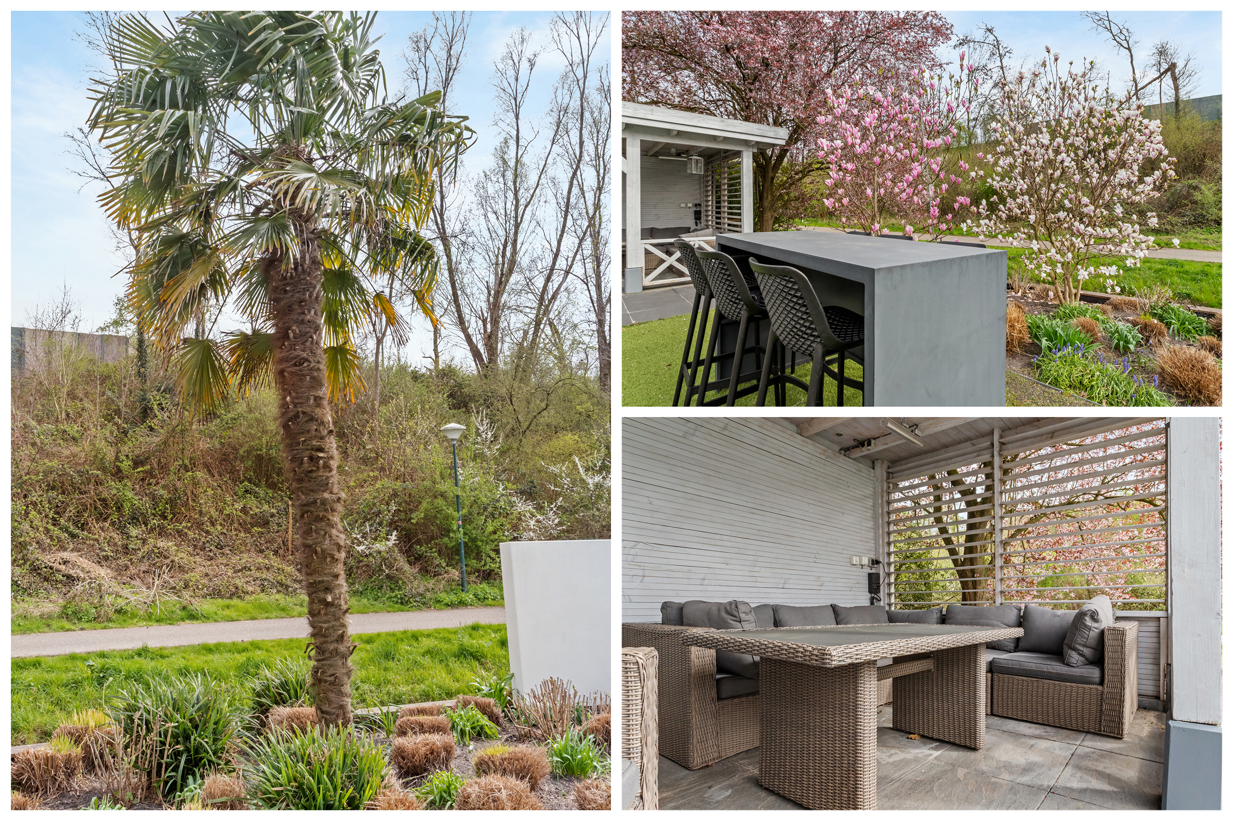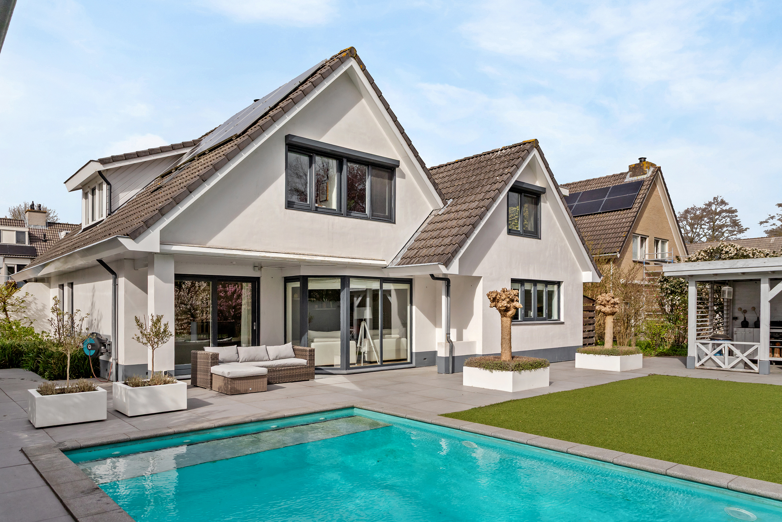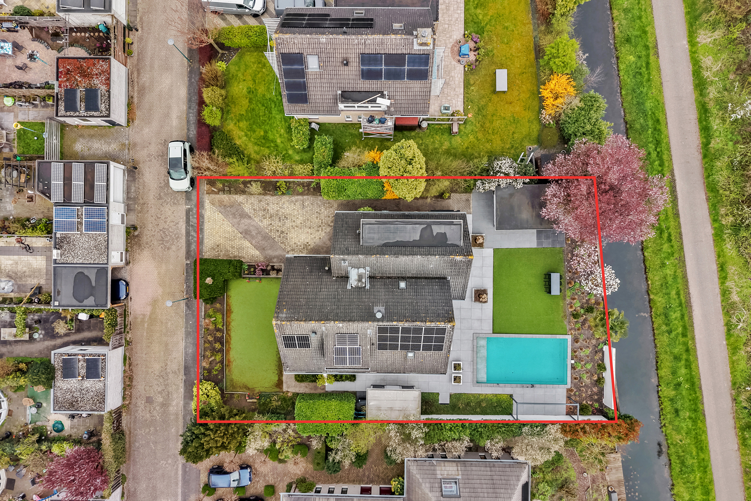 Buiten wordt het plaatje compleet. Op dit uitzonderlijk grote perceel van bijna 700 m² eigen grond is er alle ruimte om te genieten, met een zwembad en sauna als absolute blikvangers en een sfeervolle overkapping waar je door de ligging op het zuiden tot in de late uurtjes buiten zit. Aan de achterzijde grenst de tuin aan een watertje. Daarnaast beschikt de woning over een garage met ruimte voor één auto en een oprit met plek voor vier auto’s en een laadpaal.