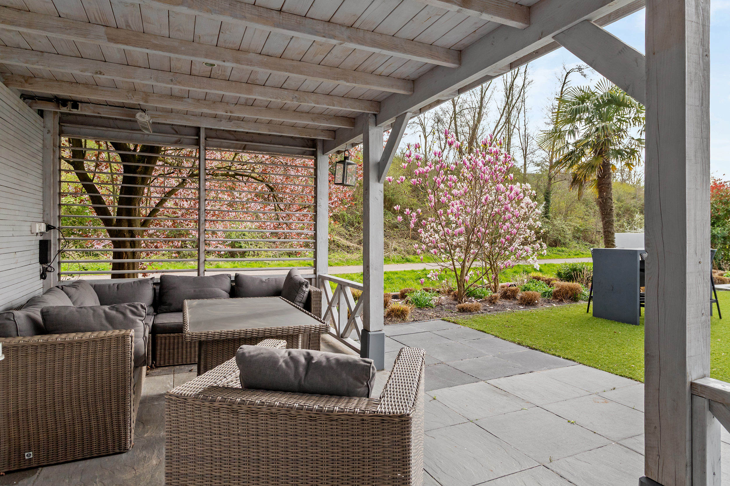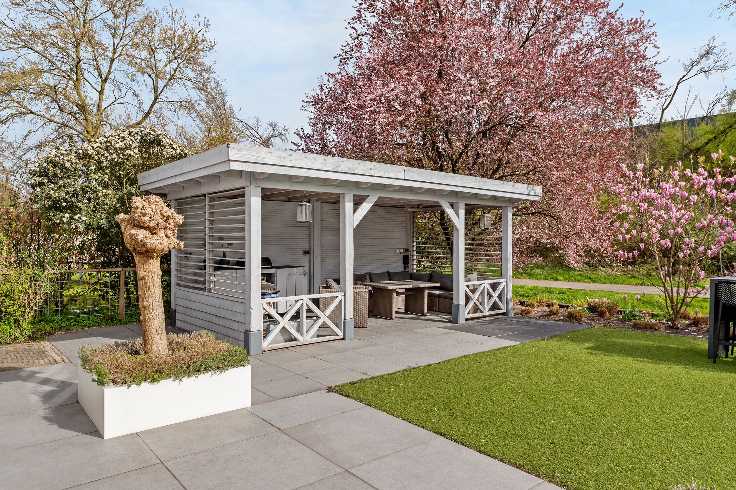 Achterin de tuin bevindt zich de sfeervolle overkapping, een plek die het hele jaar door uitnodigt om te blijven zitten. Beschut, gezellig en perfect voor lange avonden met vrienden of familie.