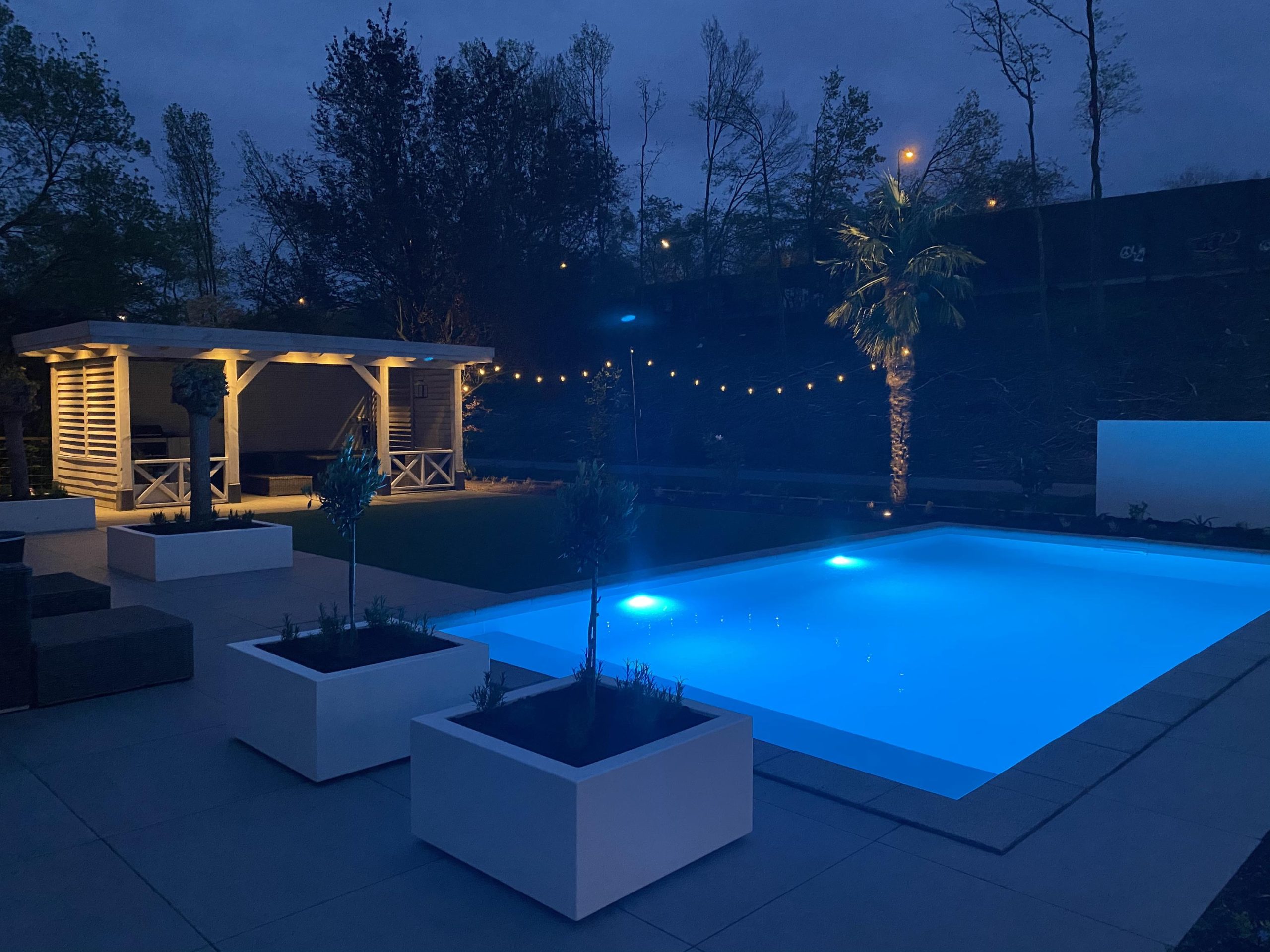 – Zwembad, sauna en sfeervolle overkapping in de tuin;