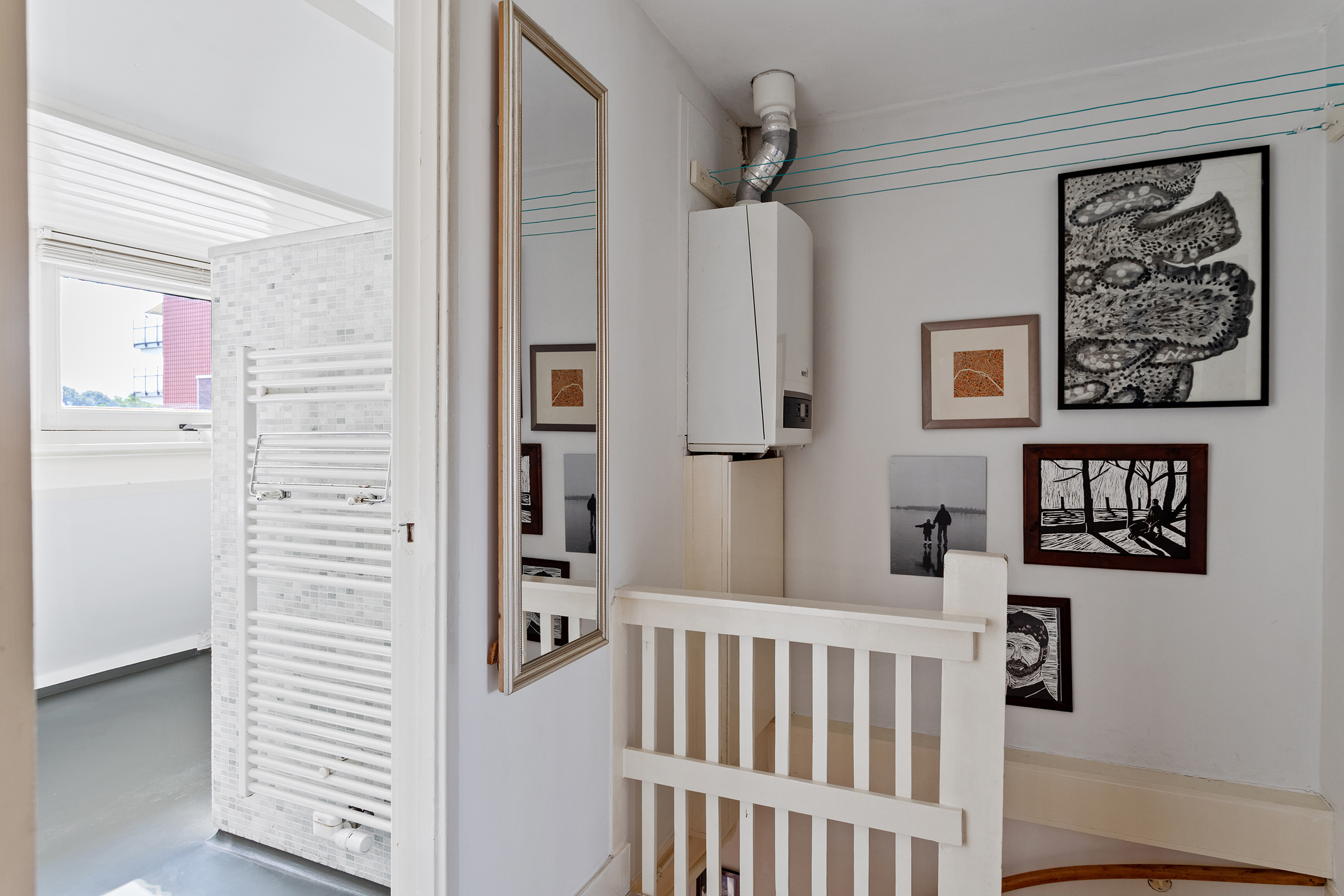 Op deze verdieping bevinden zich twee slaapkamers en de badkamer. Voor allebei de slaapkamers geldt dat het aangenaam lichte ruimtes zijn die voldoende ruimte bieden voor een tweepersoonsbed en grote kastenwand. De badkamer is voorzien van een inloopdouche, wastafel met meubel, wasmachine aansluiting en een designradiator.