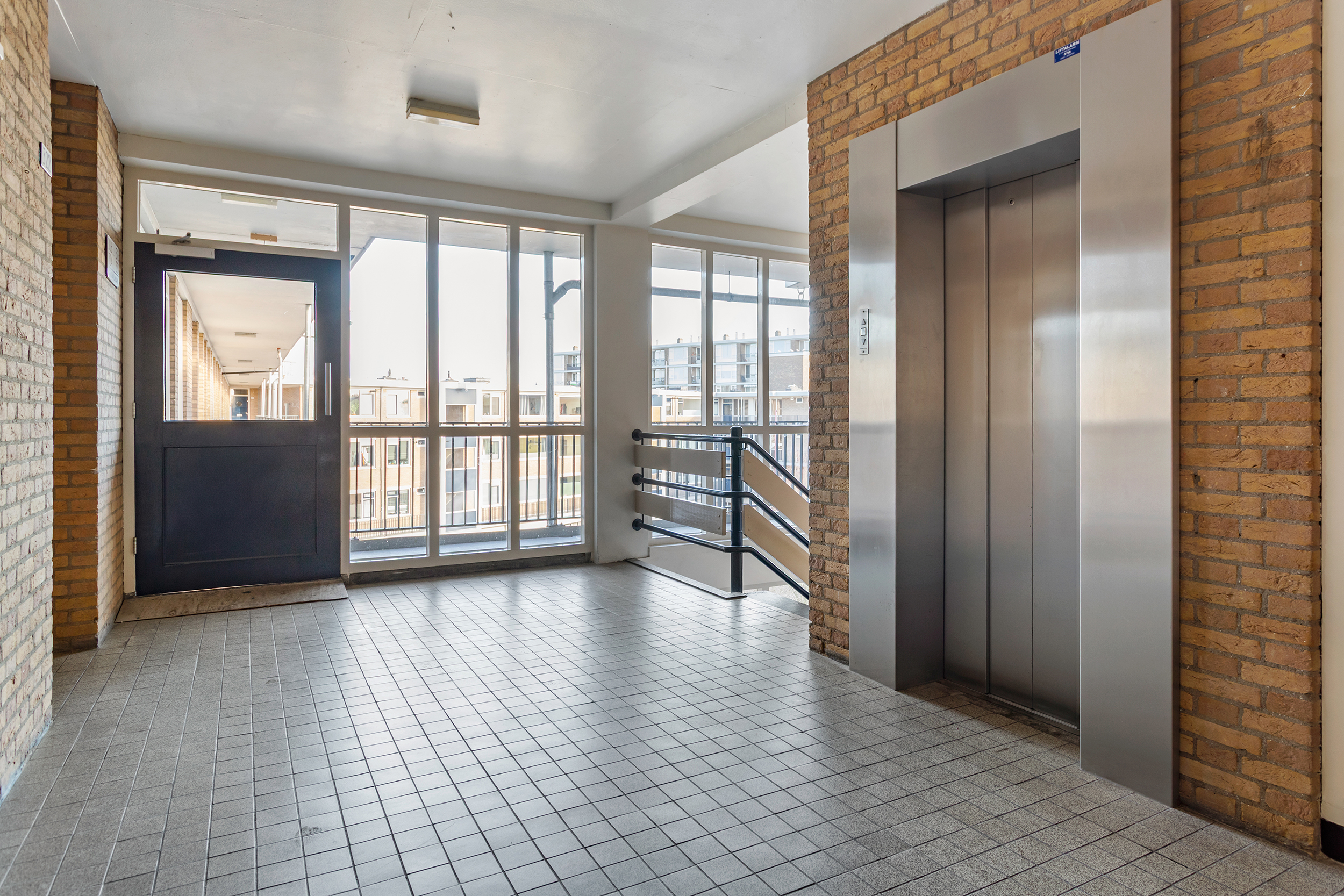Afgesloten entree met brievenbussen, lift, trappenhuis en toegang tot de ruime berging in de onderbouw. Er is eveneens een gezamenlijke fietsenstalling in de onderbouw.