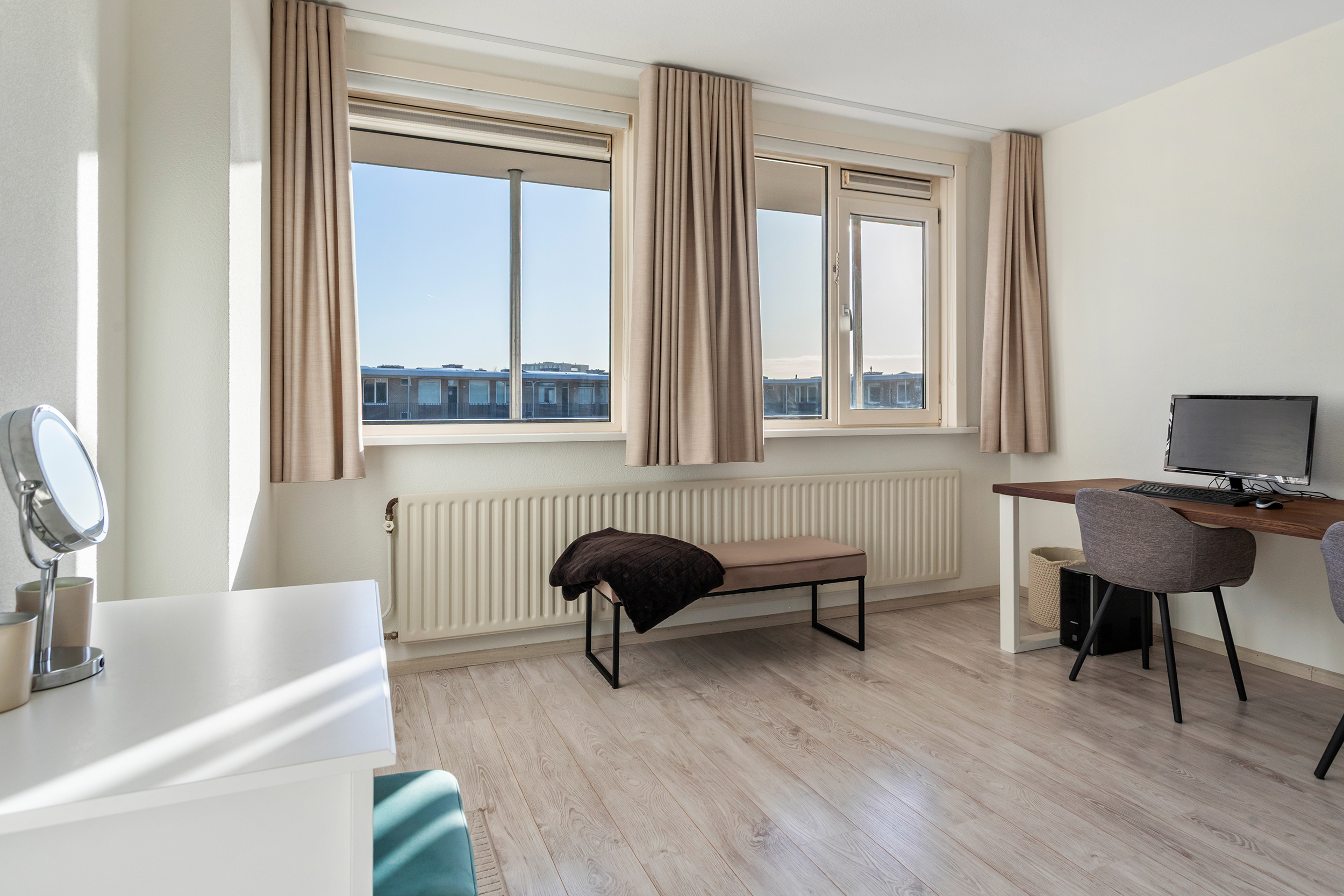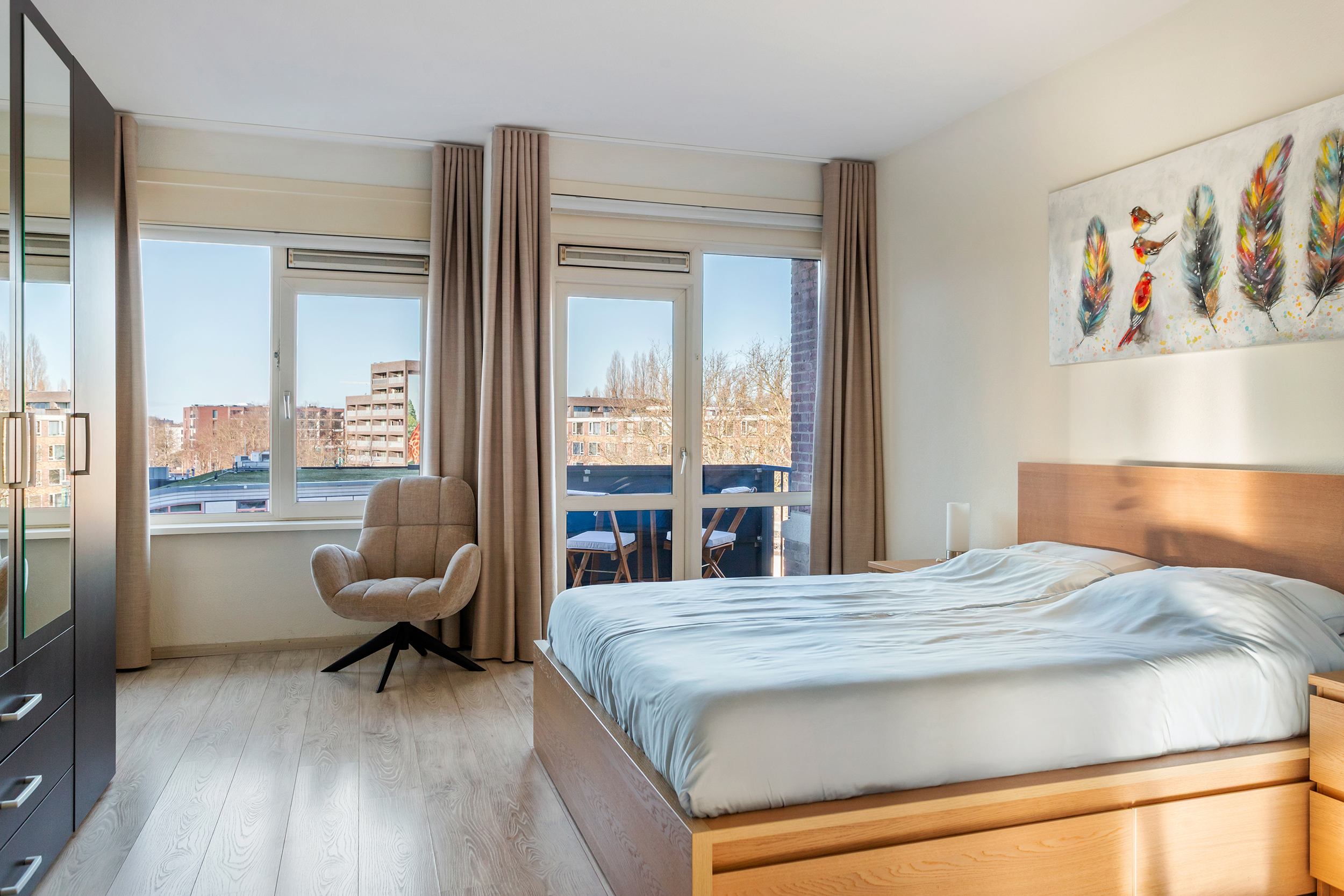 Het appartement beschikt over twee bijzonder ruime en lichte slaapkamers van 16 m² en 19 m². Beide kamers zijn royaal van formaat en bieden moeiteloos plaats aan een comfortabel tweepersoonsbed, een grote kledingkast én een volwaardige werkplek, met daarbij nog volop loop- en leefruimte. De slaapkamer aan de achterzijde was voorheen opgedeeld in twee afzonderlijke kamers, wat de afmetingen én de flexibiliteit van de indeling onderstreept. Vanuit deze kamer stap je direct het balkon op. Bij mooi weer is dit dé plek om te genieten met zon tot in de late avonduurtjes.