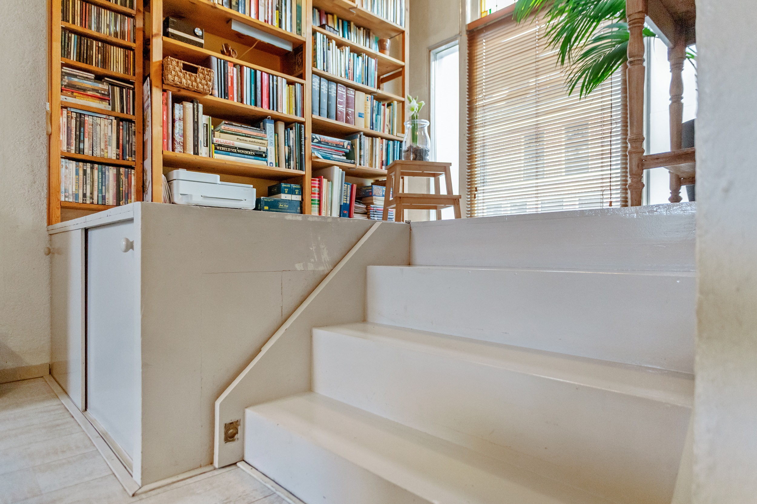Onder de woonkamer bevindt zich een praktische kelder van circa 5 m², bereikbaar via een slim verborgen luik in de verhoogde vloer van de woonkamer. Een bijzonder en functioneel detail dat meteen de inventiviteit van de woning laat zien.