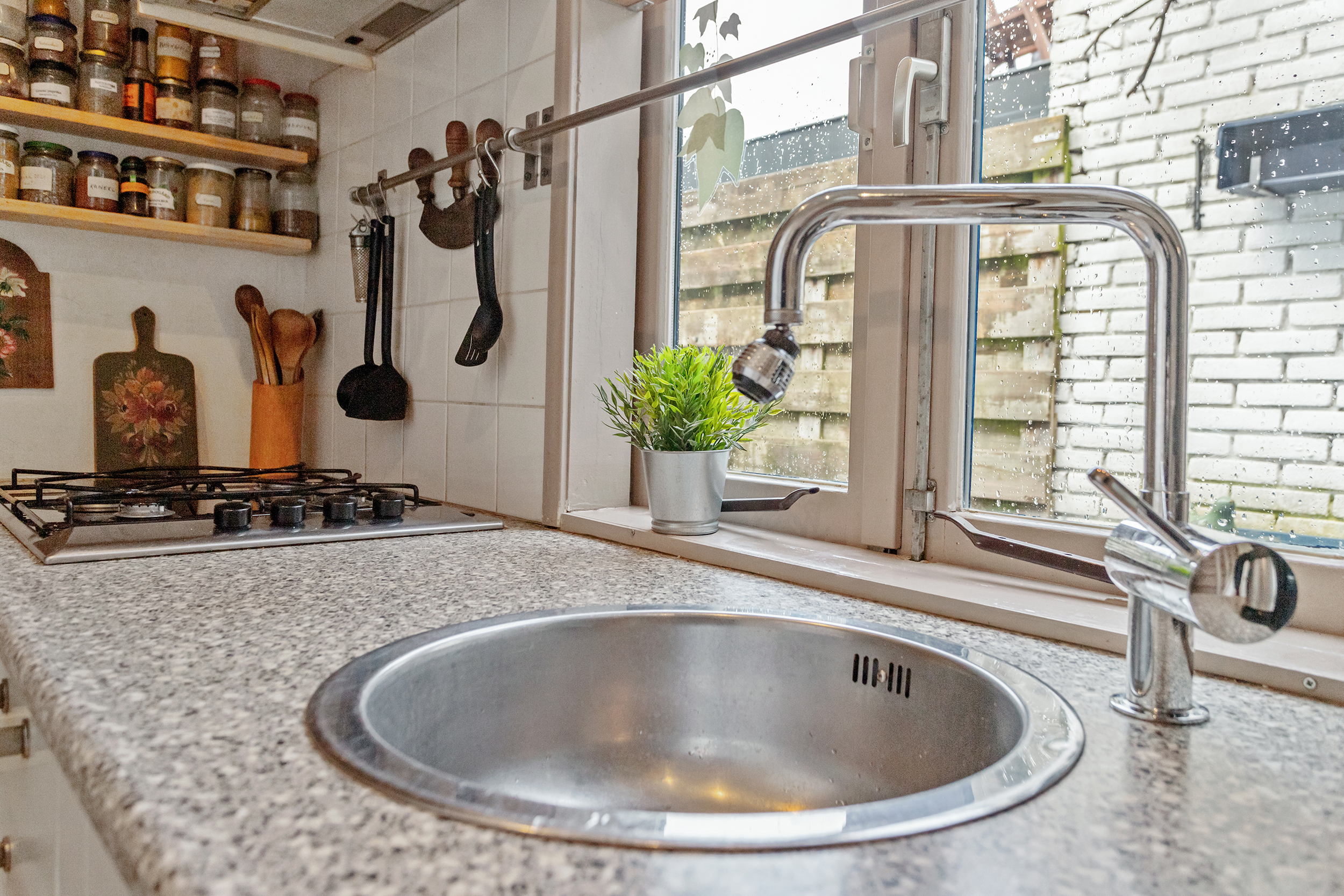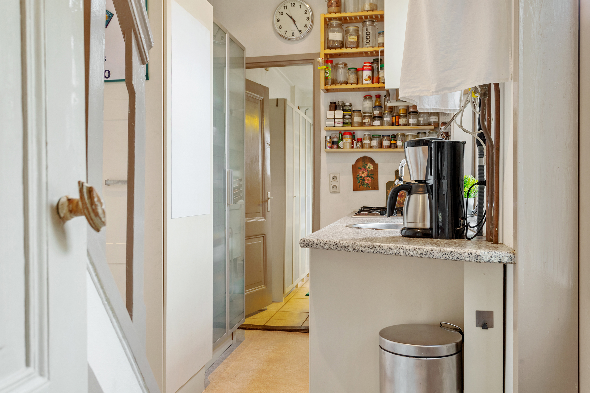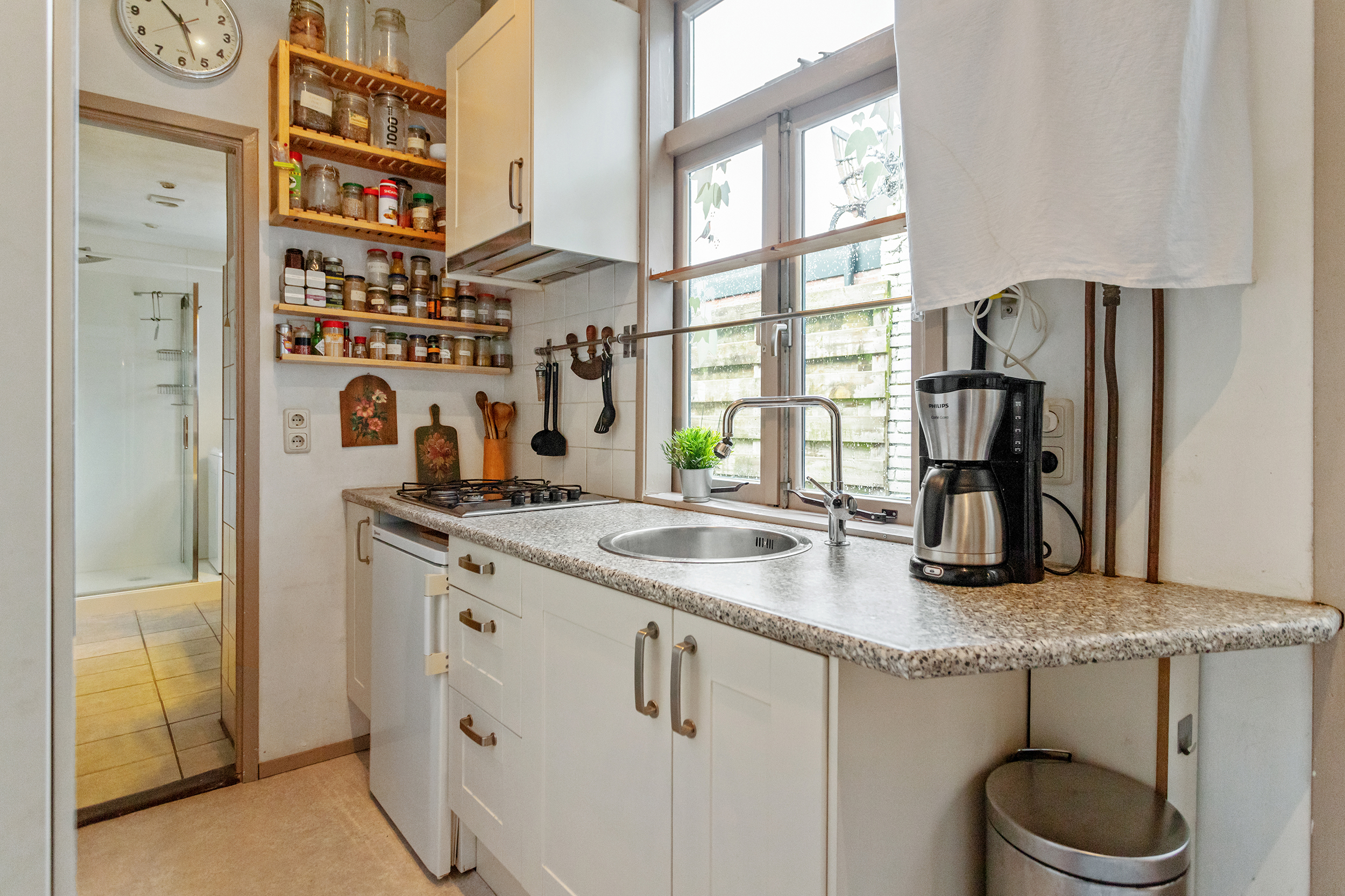 Aan de achterzijde bevindt zich de keuken. Deze is praktisch ingericht met alles wat je nodig hebt, maar biedt tegelijkertijd een mooie kans om hier een droomkeuken te realiseren die volledig aansluit bij jouw woonwensen.
