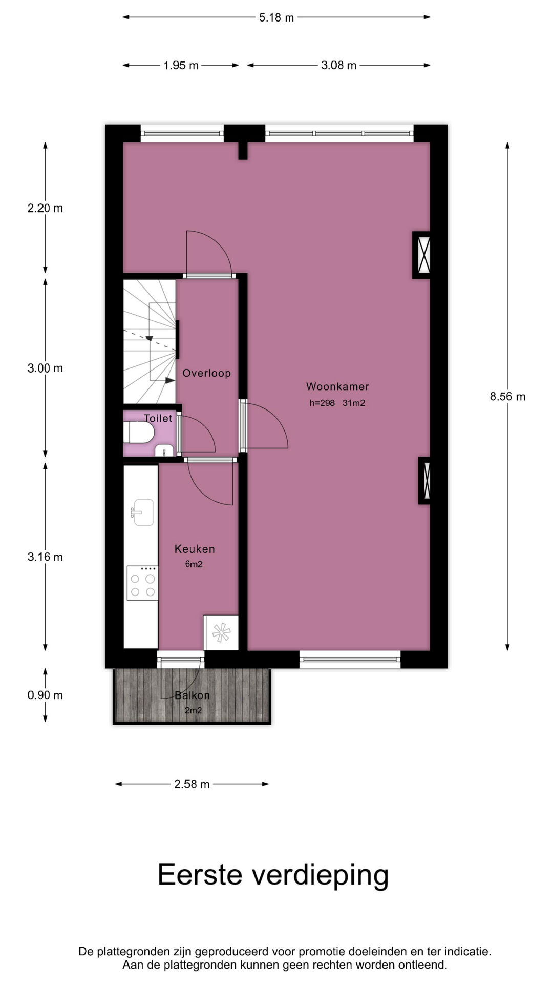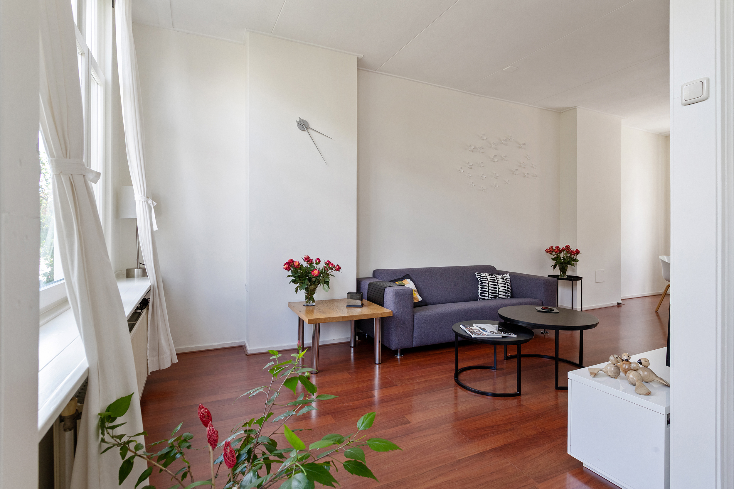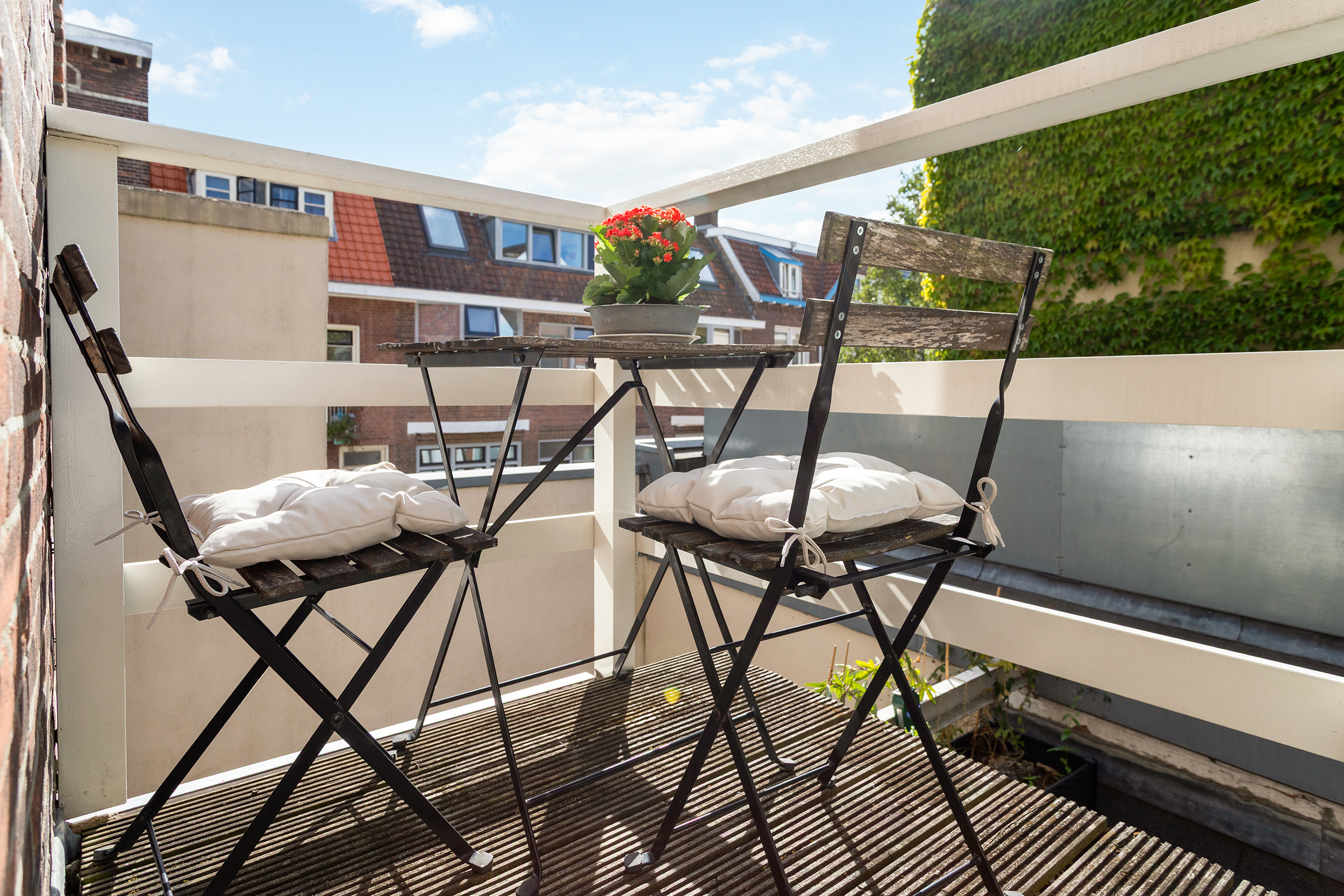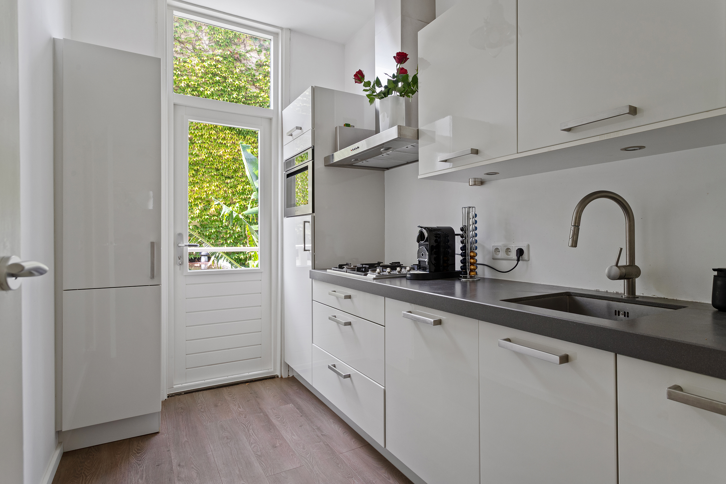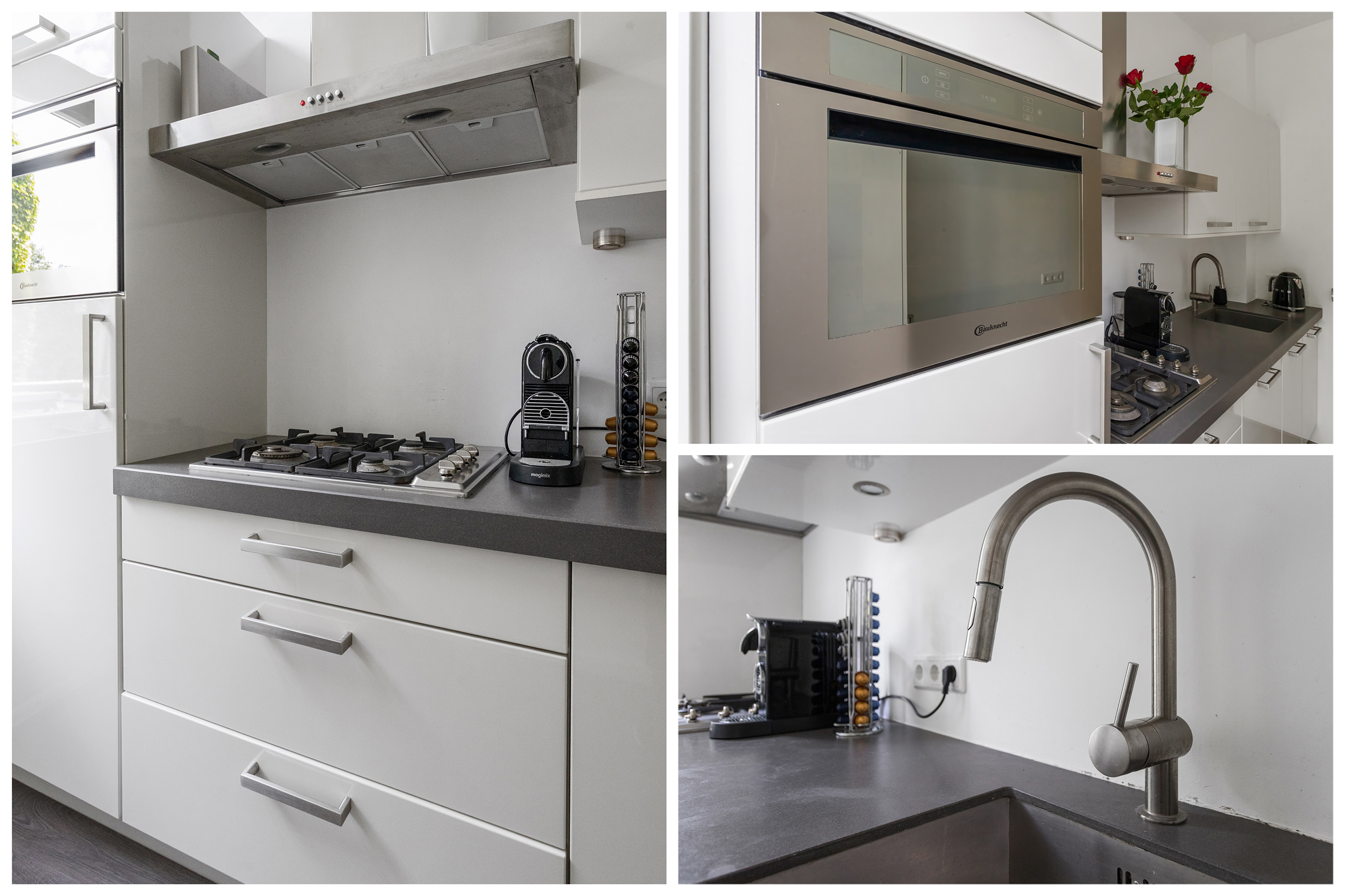 Aan de achterzijde ligt de keuken, voorzien van alle benodigde inbouwapparatuur en voldoende werk- en kastruimte. Vanuit hier stap je zo het balkon op, gelegen op het westen – een heerlijke plek om in de middag en avond van de zon te genieten.