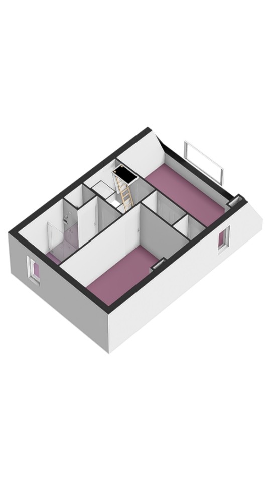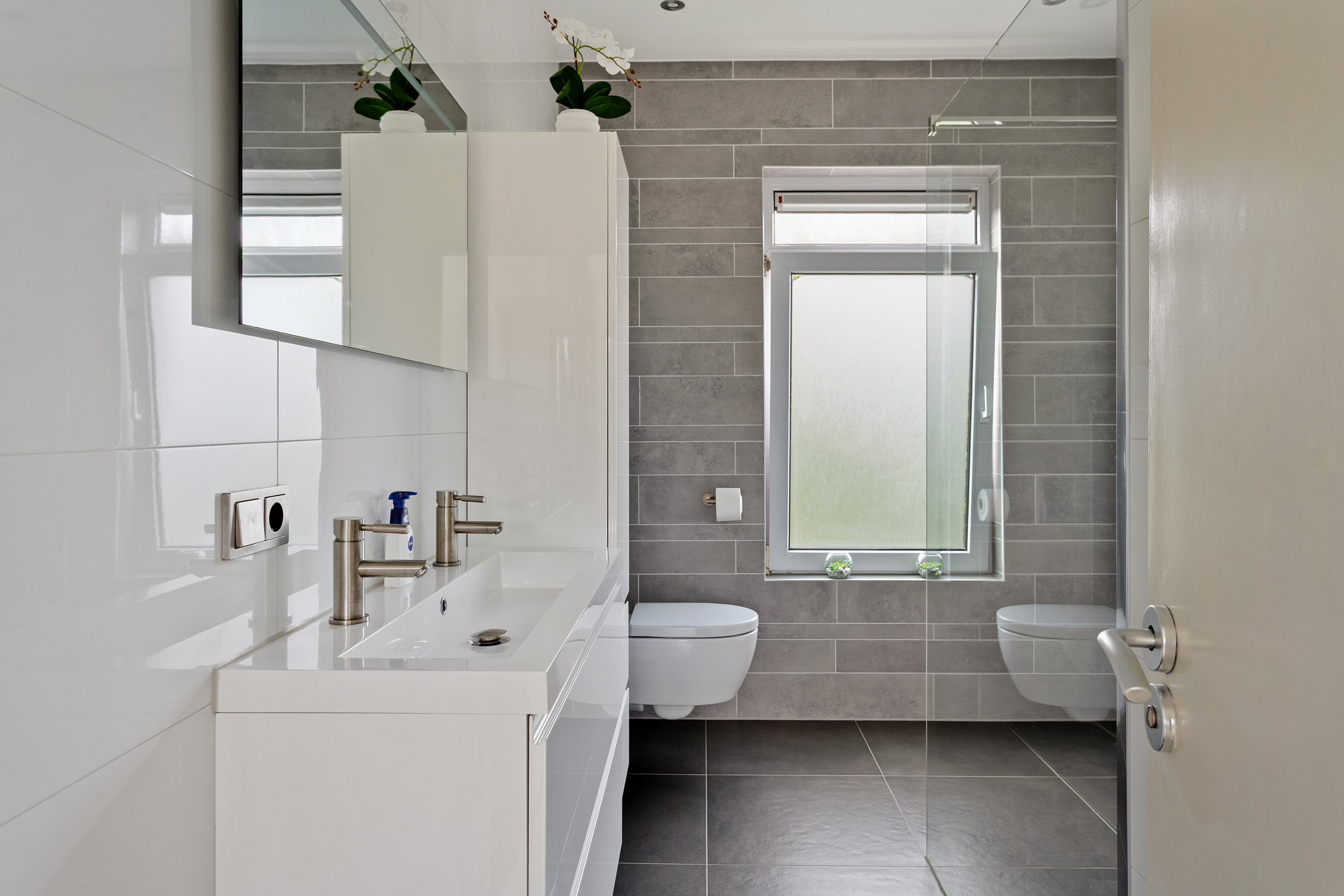 De overloop geeft toegang tot de slaapkamers en de badkamer. Aan de voorzijde ligt de grootste slaapkamer voorzien van ingebouwde kasten. Aan de achterzijde bevinden zich de tweede slaapkamer en de badkamer. De badkamer is modern uitgevoerd en voorzien van een inloopdouche, een dubbele wastafel met meubel en het tweede toilet.