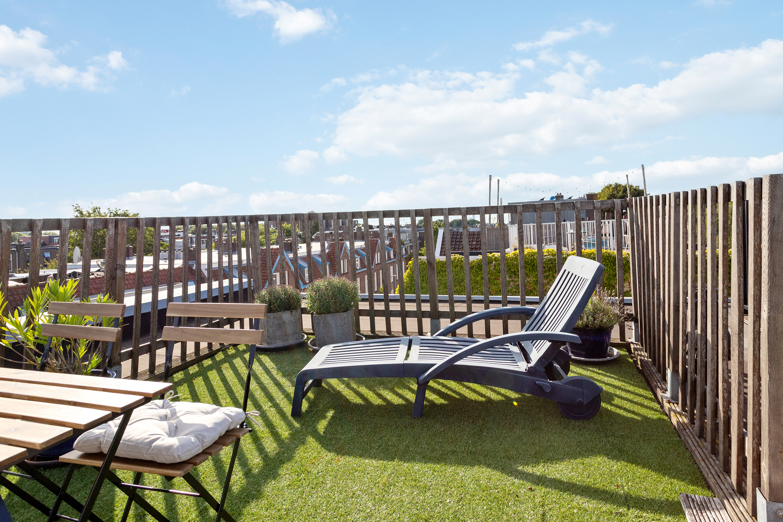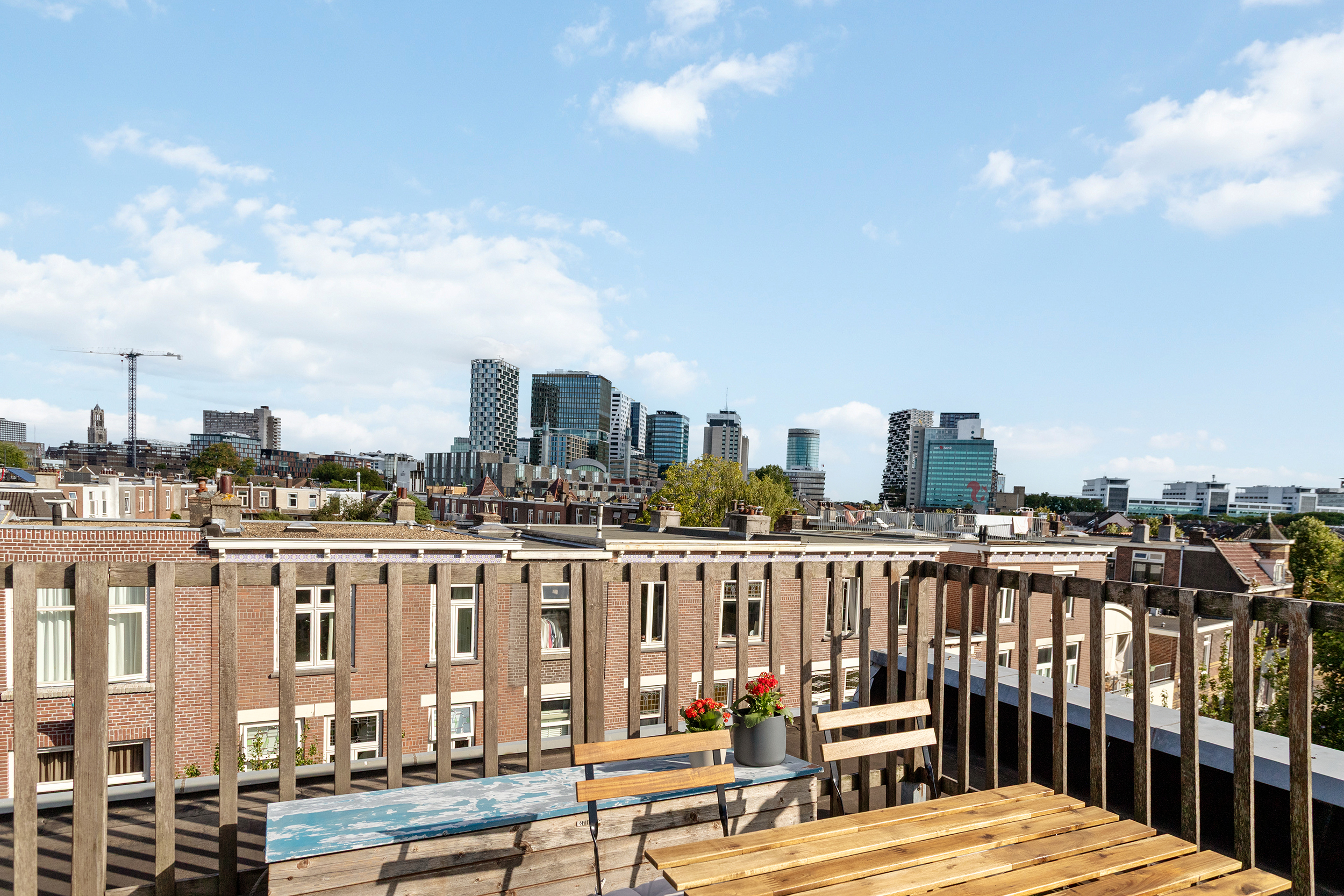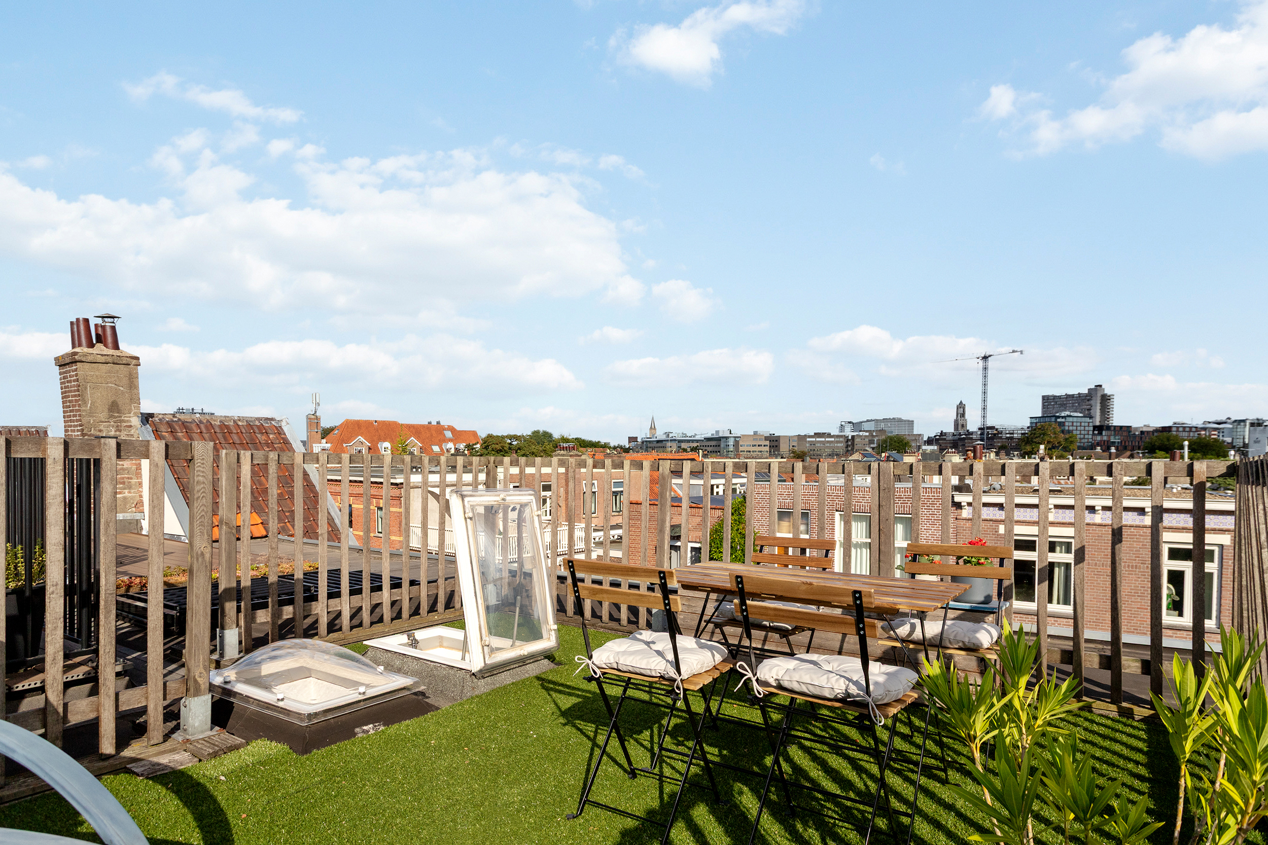 Het royale dakterras van circa 18 m² vormt een absoluut hoogtepunt van de woning. Dankzij de gunstige ligging geniet je hier volop van de zon en een weids uitzicht over de stad. Een heerlijke plek om te ontspannen, te borrelen of samen te eten in de buitenlucht.