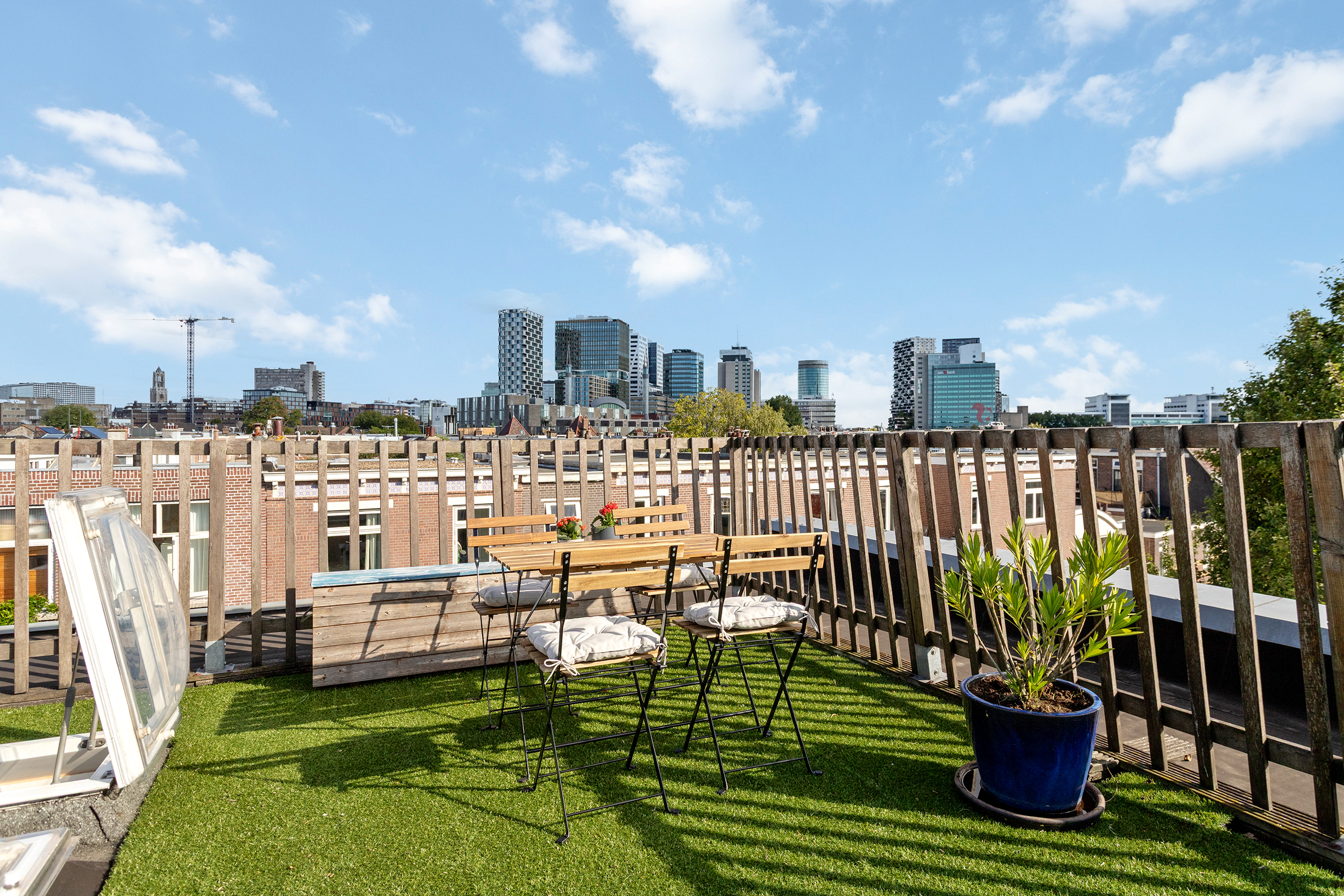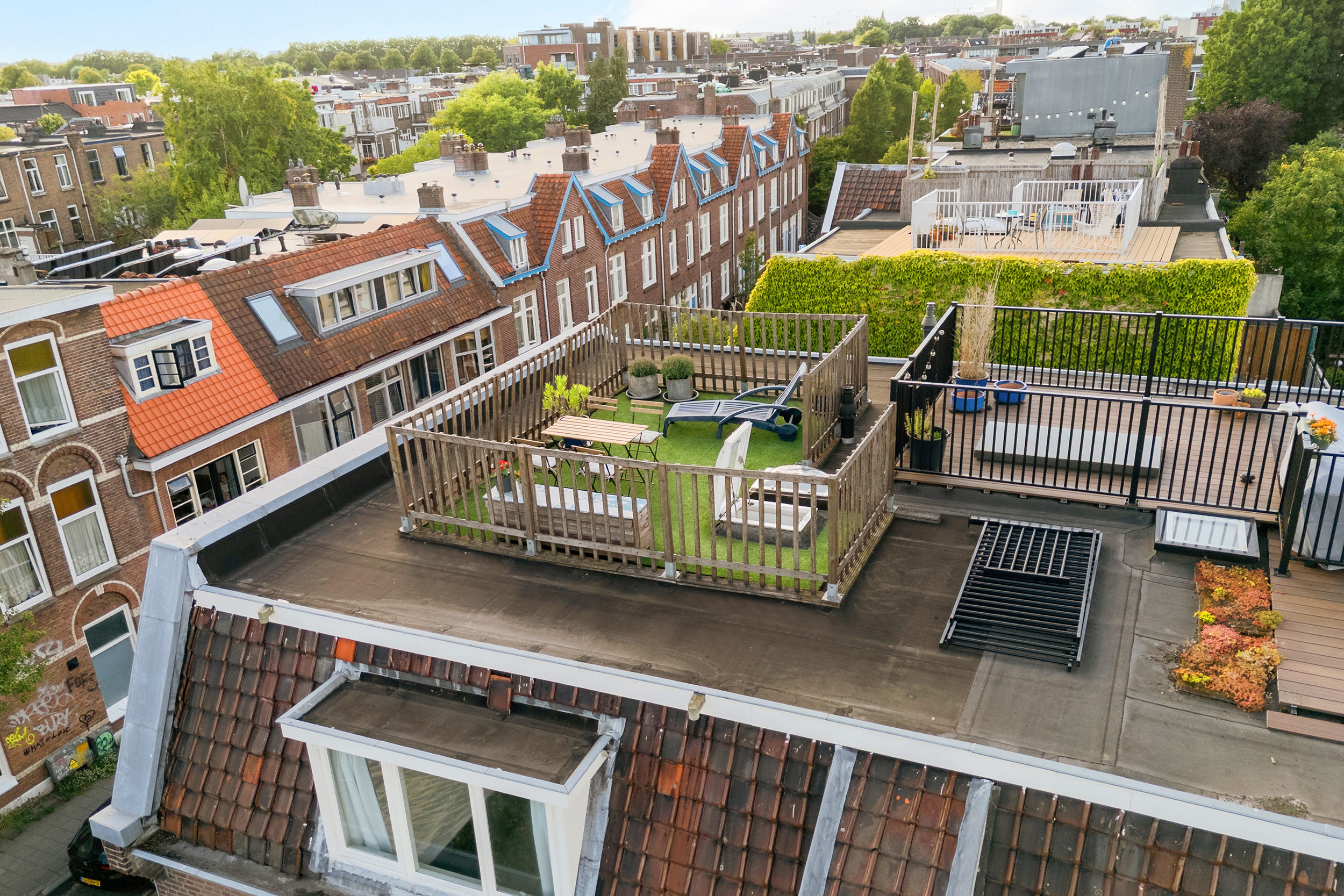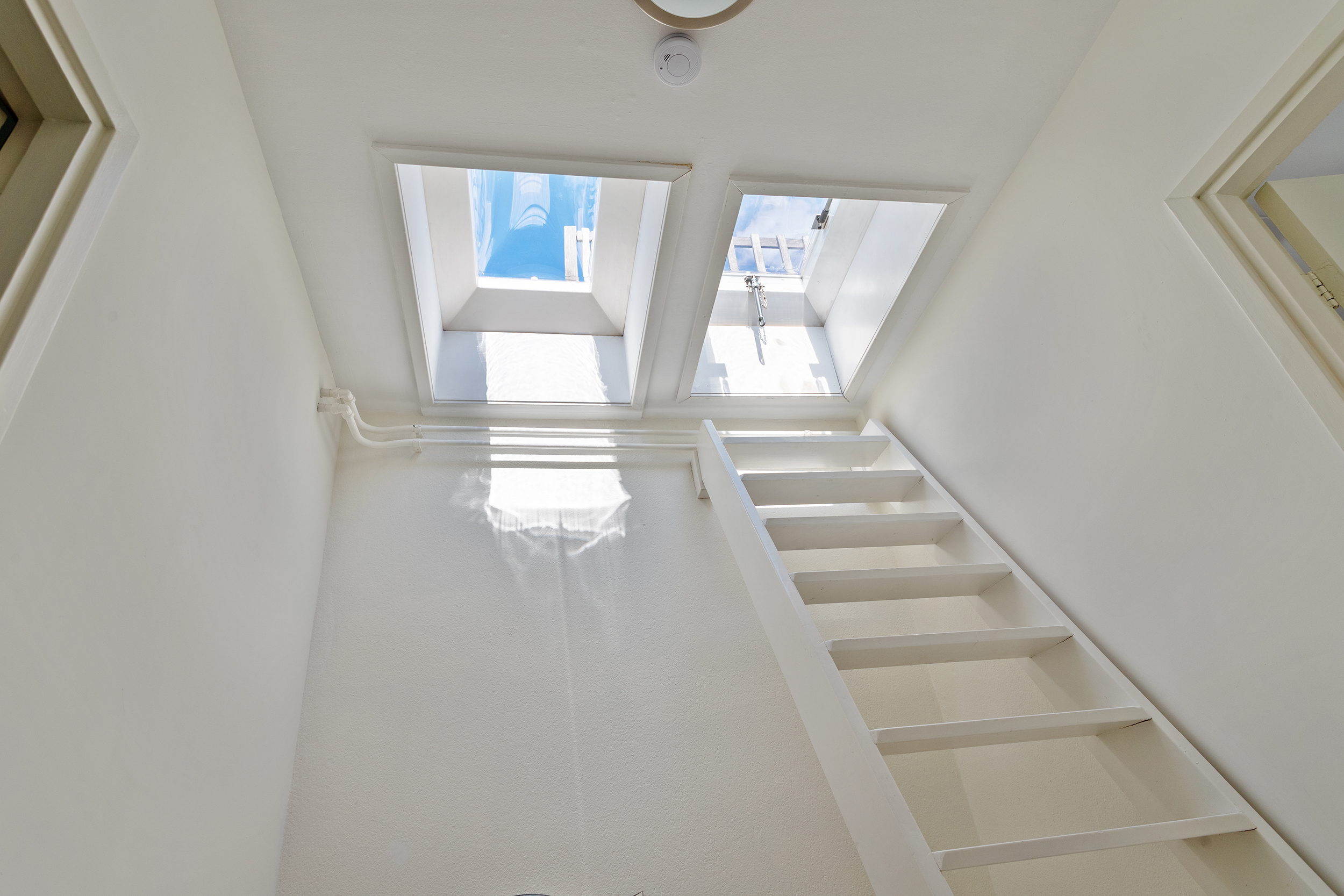 Het royale dakterras van circa 18 m² vormt een absoluut hoogtepunt van de woning. Dankzij de gunstige ligging geniet je hier volop van de zon en een weids uitzicht over de stad. Een heerlijke plek om te ontspannen, te borrelen of samen te eten in de buitenlucht.