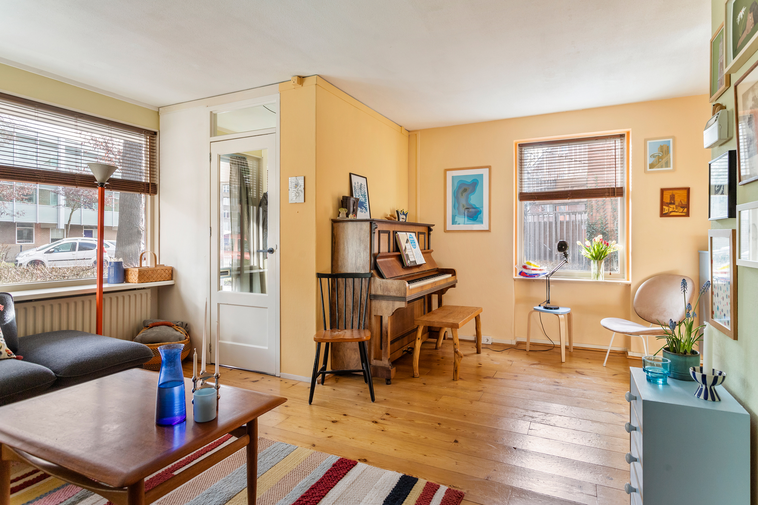 – Ruime woonkamer met fraaie houten vloer