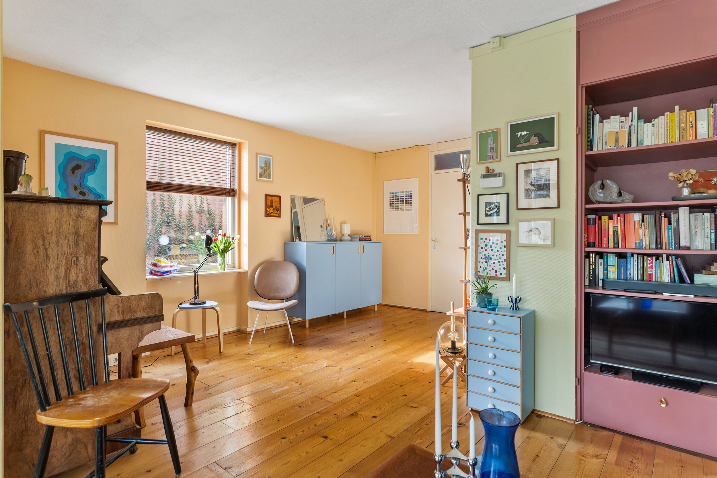 De slaapkamer ligt eveneens aan de achterzijde en biedt daardoor een rustige plek met uitzicht op het groen. Er is hier meer dan voldoende ruimte voor een tweepersoonsbed en een grote kledingkast.