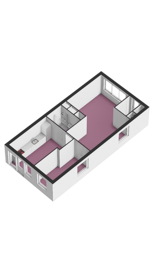 Centraal in het appartement bevindt zich de badkamer. Deze is compact maar functioneel ingedeeld en voorzien van douche, toilet, wastafel met meubel en wasmachine aansluiting.