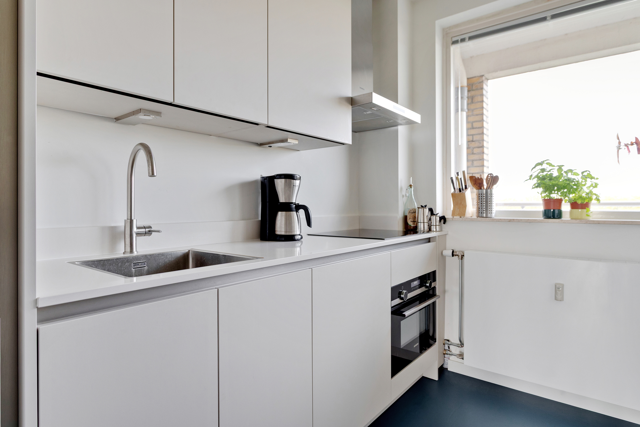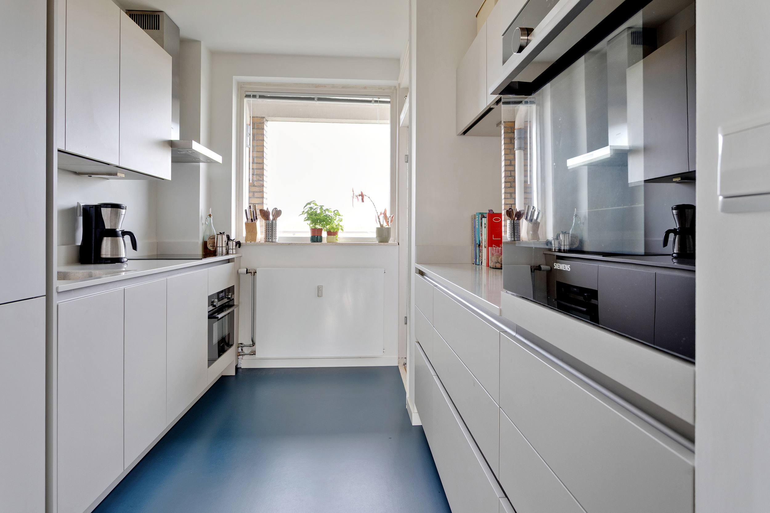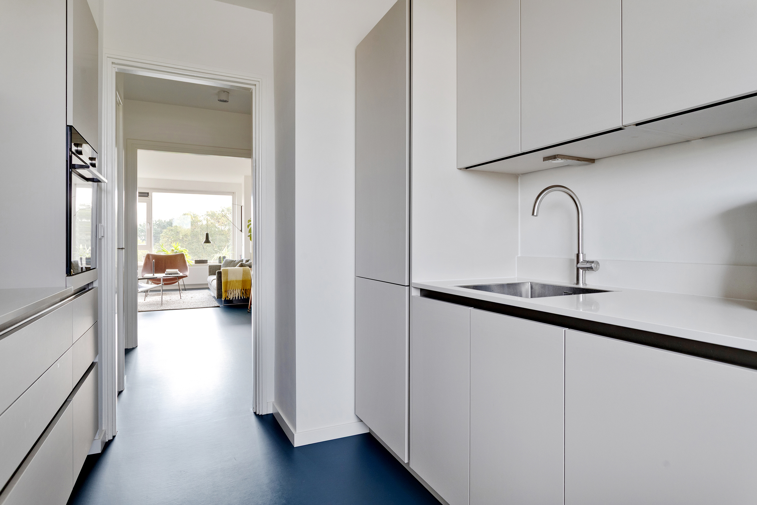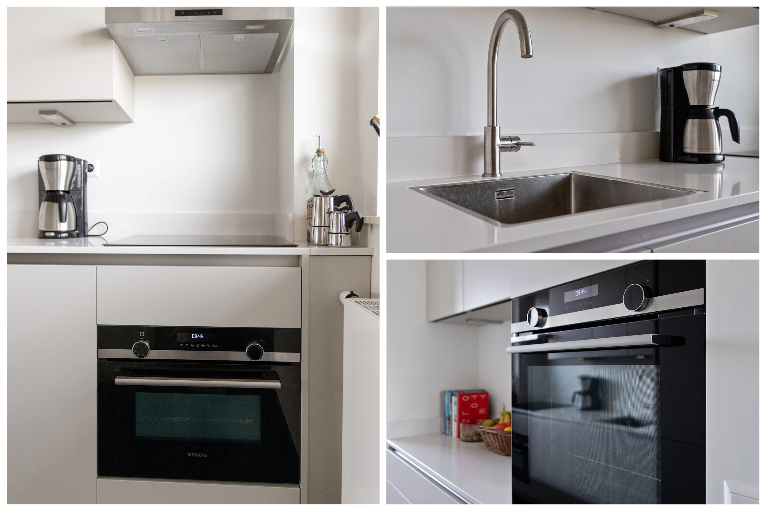 De keuken is in 2023 volledig vernieuwd en uitgevoerd in een strak, modern design. Met veel kastruimte en alle benodigde inbouwapparatuur is dit een plek waar praktisch gemak en kookplezier moeiteloos samenkomen. Aangrenzend aan de keuken is een kleine bijkeuken met aansluitingen voor de wasmachine en droger.
