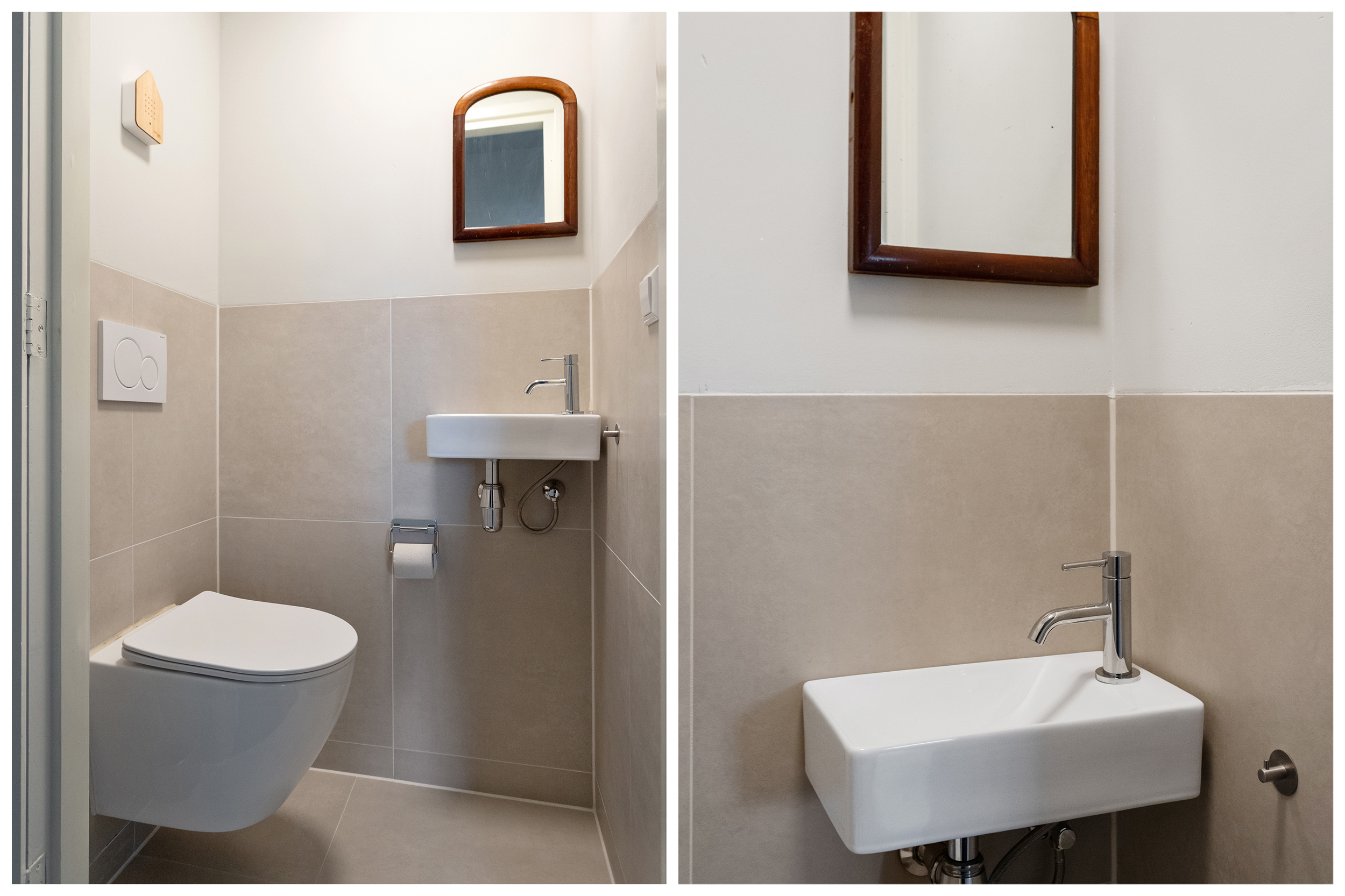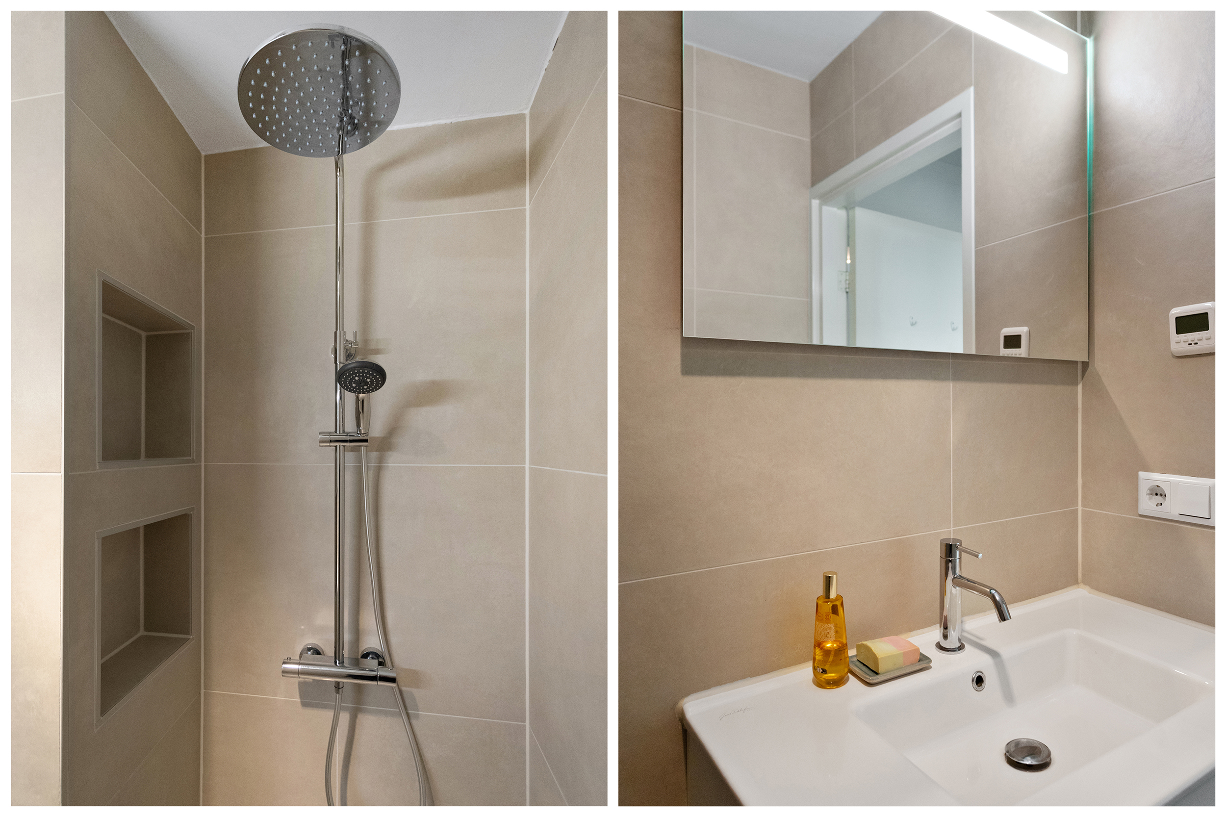 De badkamer is eveneens in 2023 vernieuwd en uitgerust met een moderne inloop (regen)douche en wastafel. Het toilet is separaat van de badkamer.