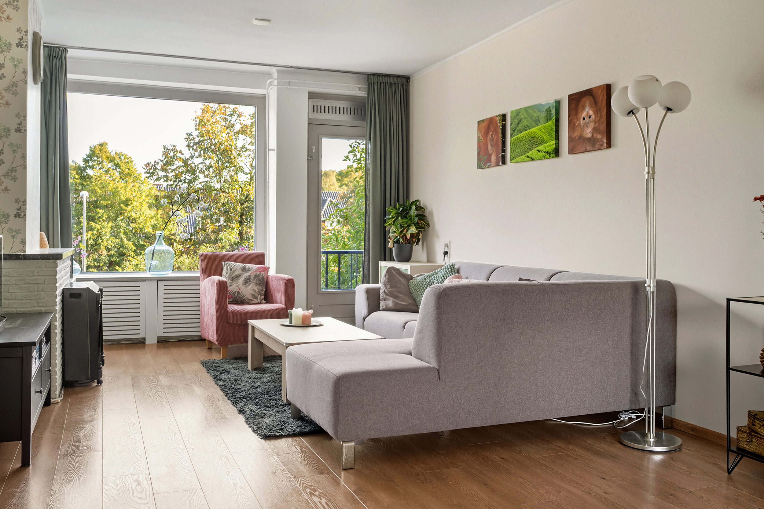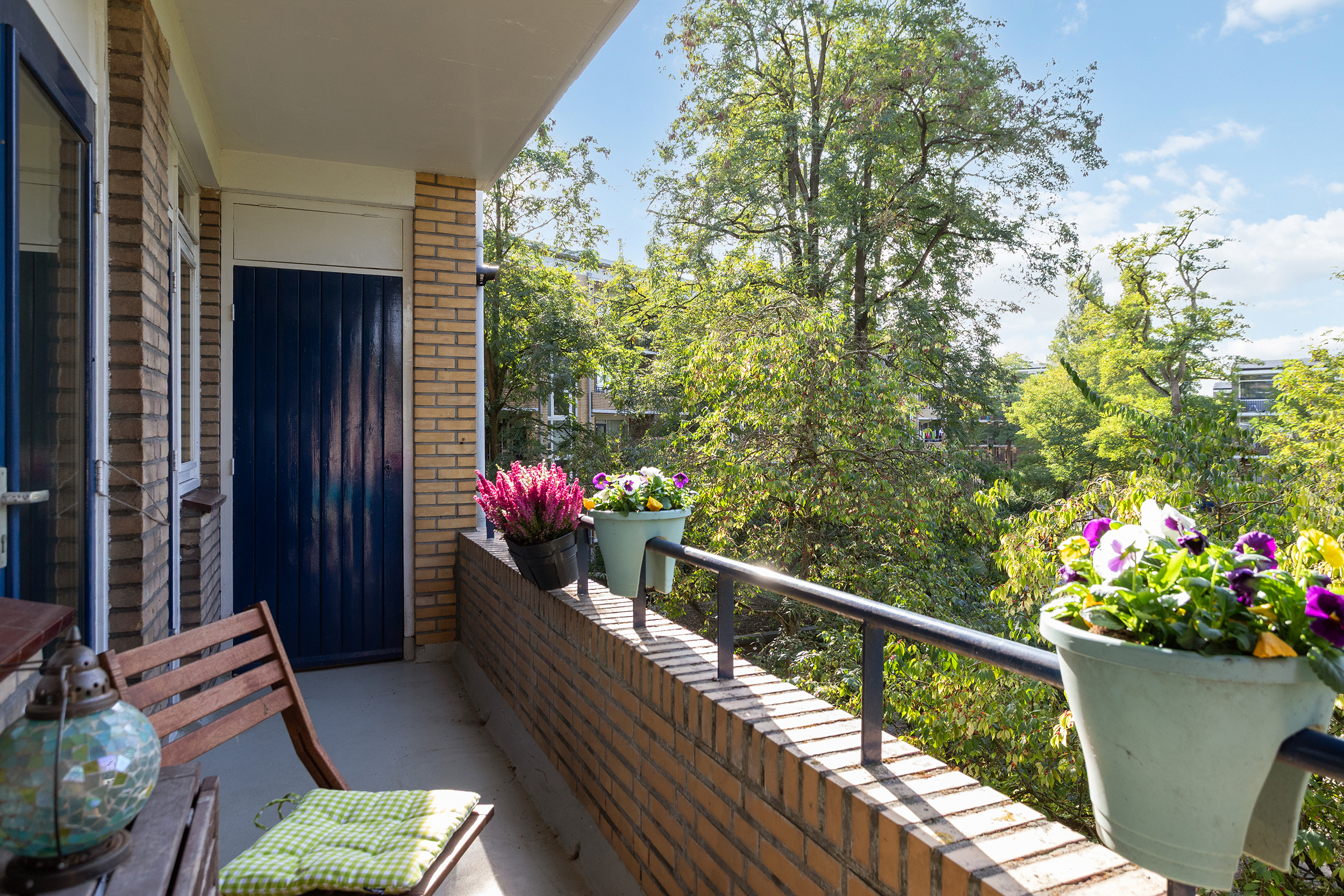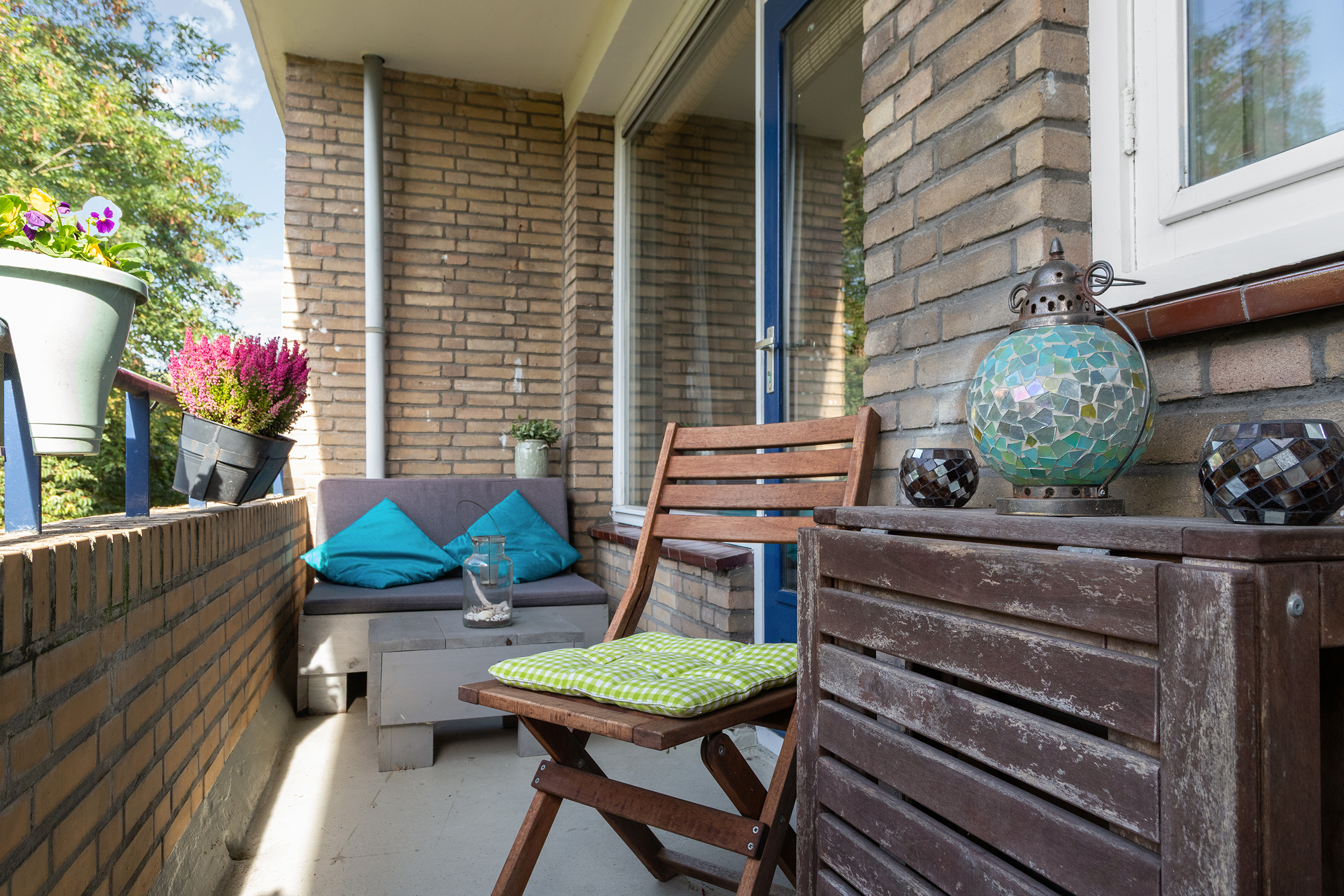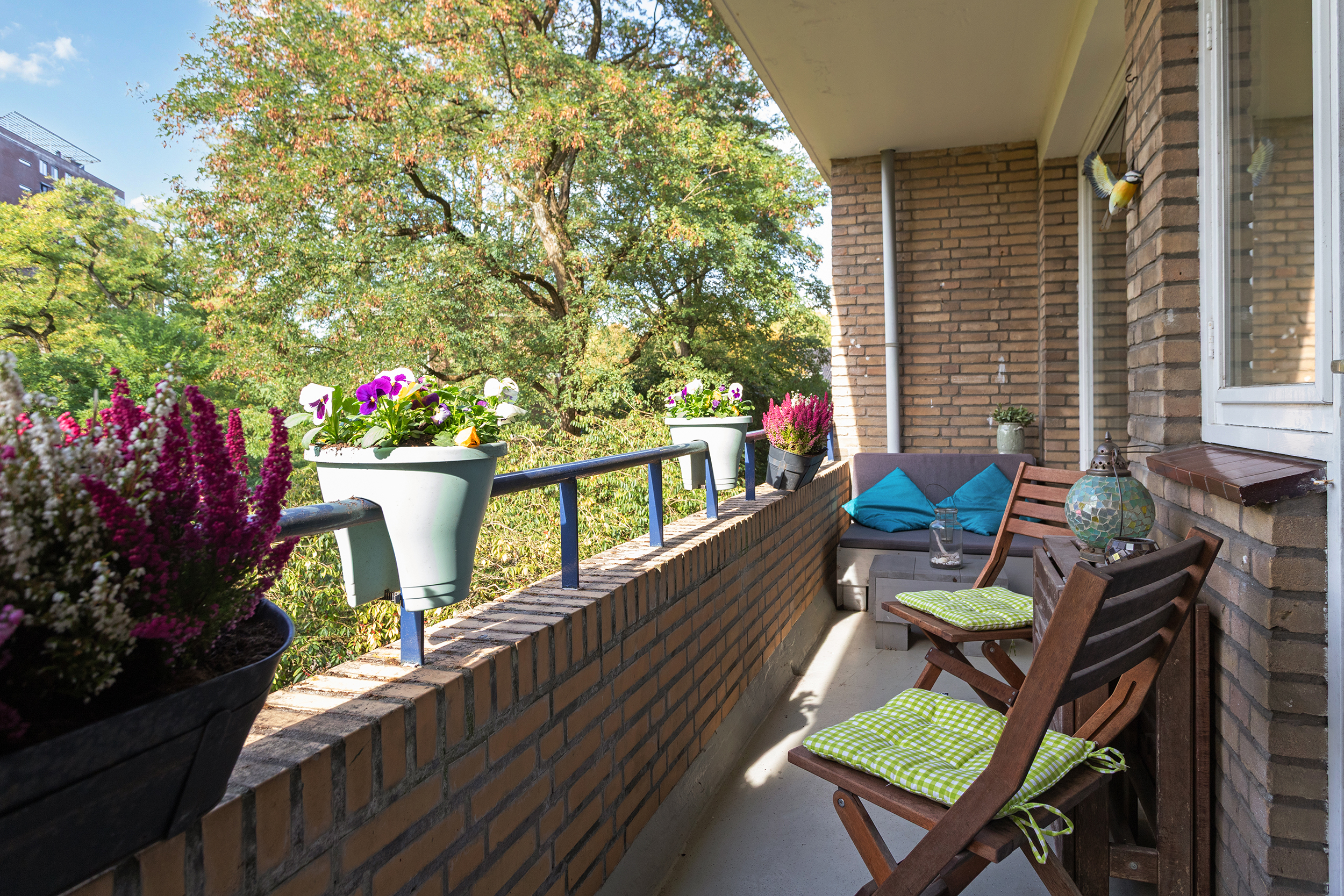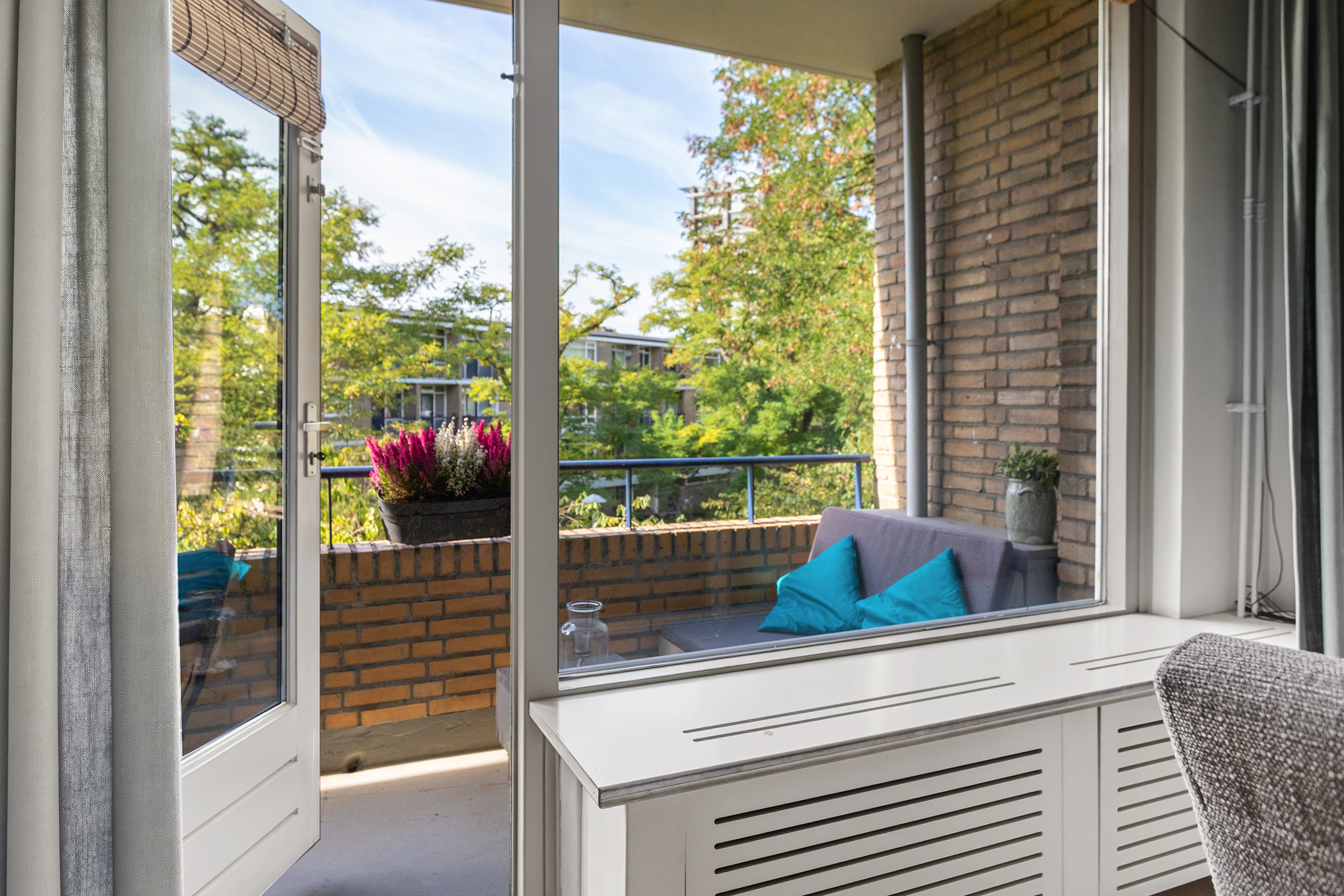 Het royale balkon aan de achterzijde gelegen op het zuid-westen is een absolute meerwaarde. Hier zit je heerlijk tussen het groen, met voldoende plek voor een zitje of een eettafel. Met lekker weer is dit dan ook dé plek om te vertoeven met een hapje en een drankje. Aan de voorzijde bevindt zich daarnaast een frans balkon.