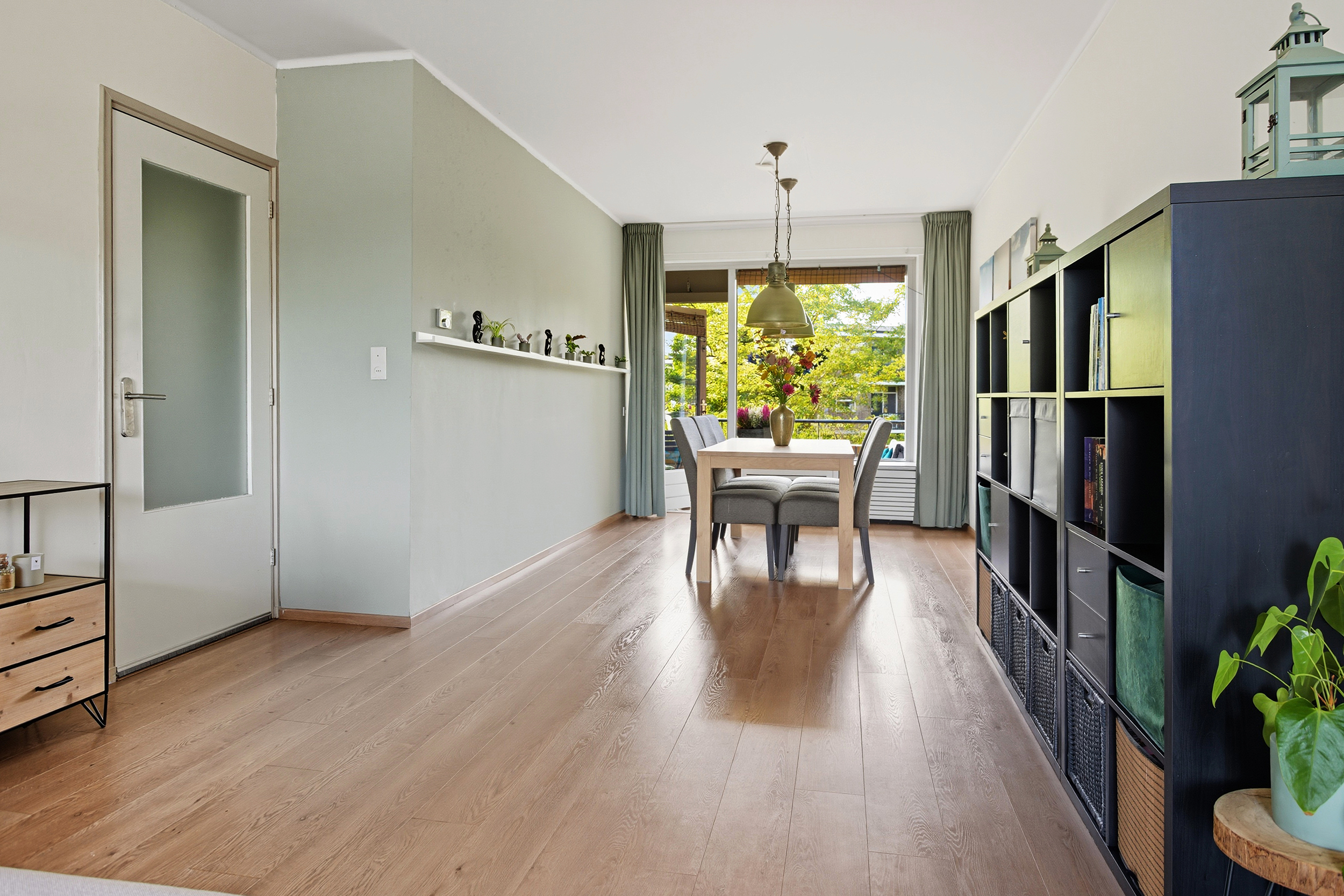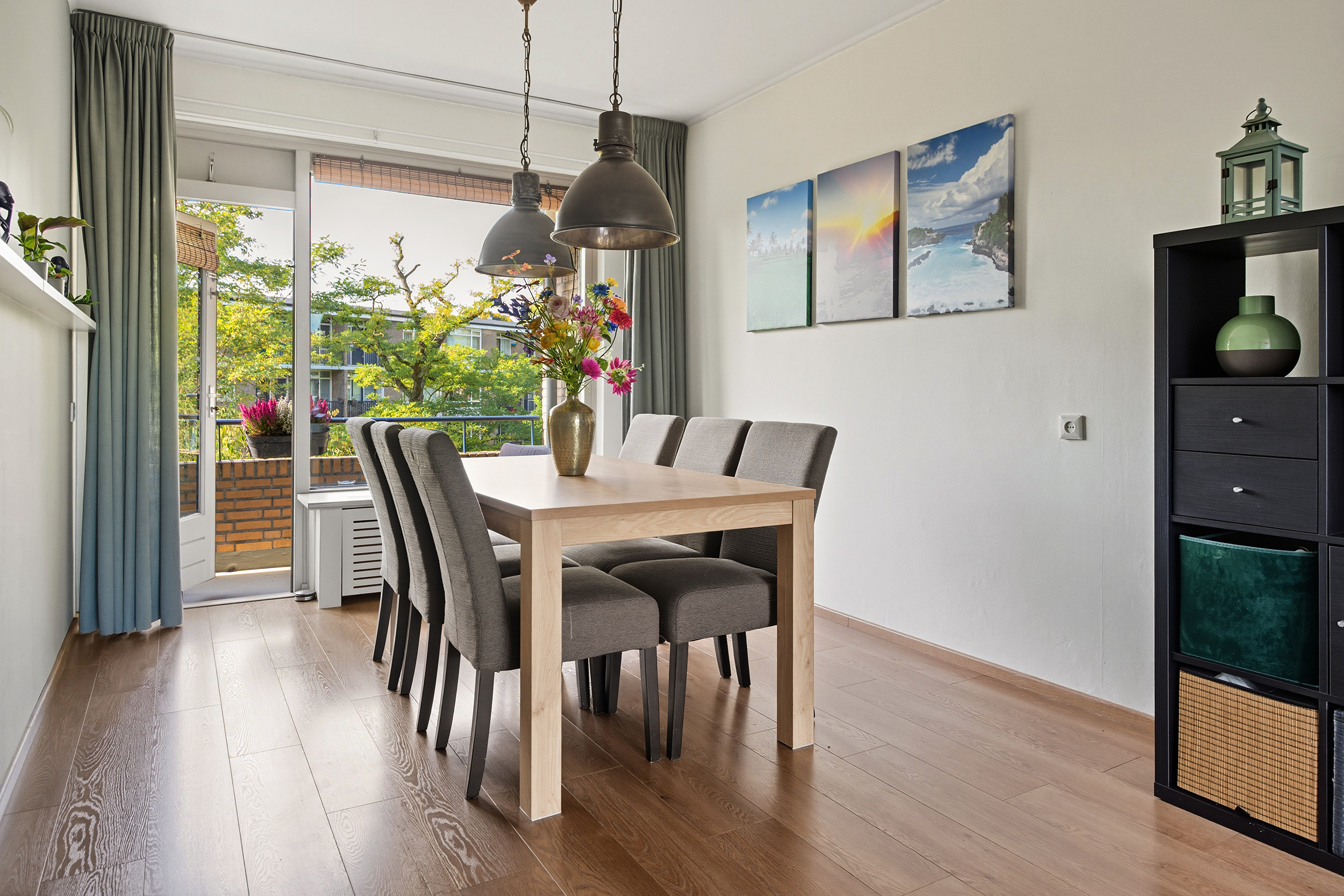 Je komt binnen in de hal die toegang biedt tot alle vertrekken van het appartement. Aan het einde van de gang bevindt zich de grote woon-/eetkamer: een opvallend lichte ruimte met grote ramen aan beide zijden. Hier is volop plek voor een gezellige zithoek en een grote eettafel waar je uitgebreid kunt dineren met vrienden en familie. Zodra de zomer begint, zet je de deuren aan voor- en achterzijde open en ontstaat er een heerlijk binnen-buitengevoel. Aan de achterzijde ligt een ruim balkon, terwijl de voorzijde een charmant Frans balkon biedt.