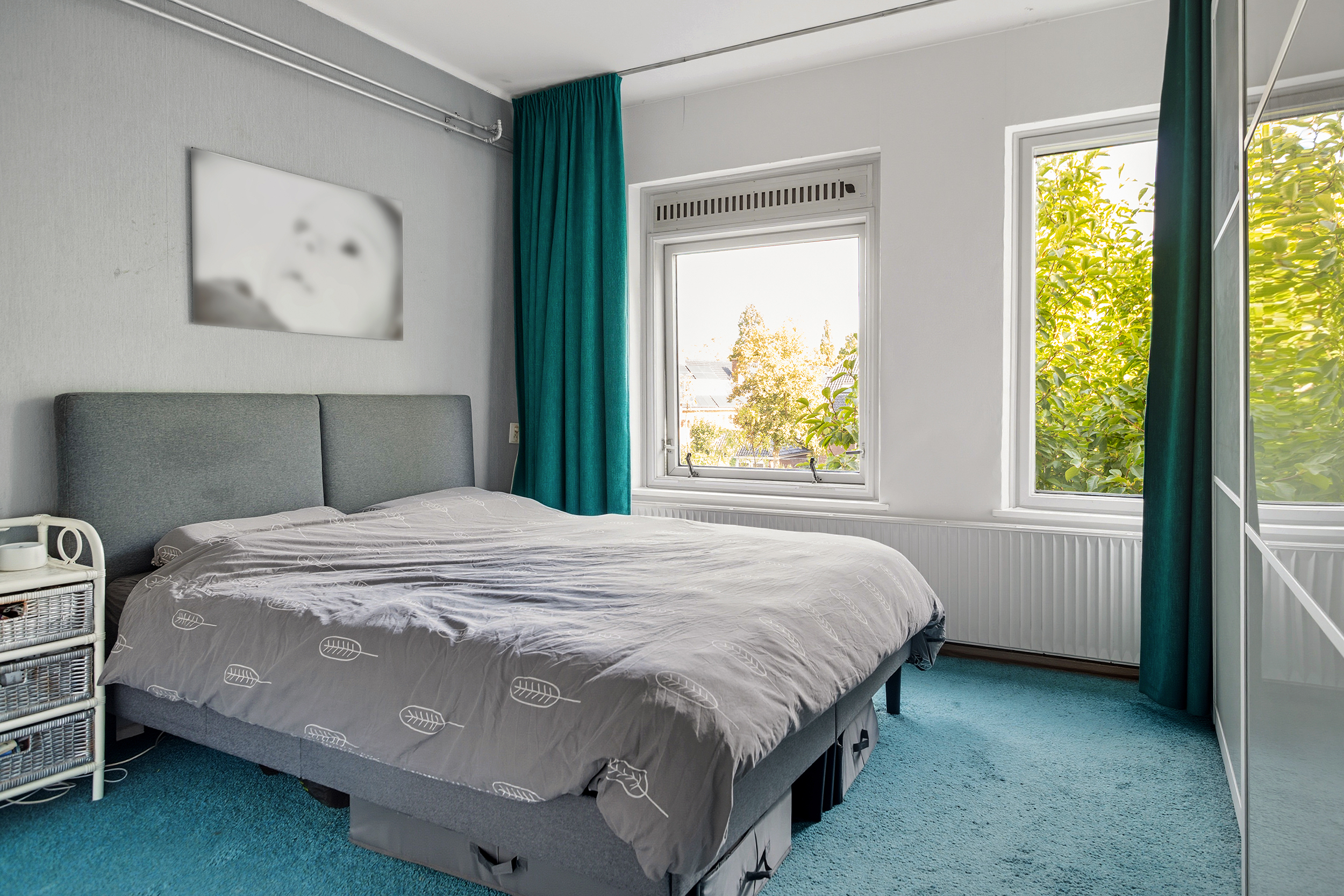 De woning heeft twee lichte slaapkamers, beide met vaste kasten. De eerste slaapkamer ligt aan de voorzijde, de tweede slaapkamer bevindt zich aan de achterzijde en biedt directe toegang tot het grote balkon.