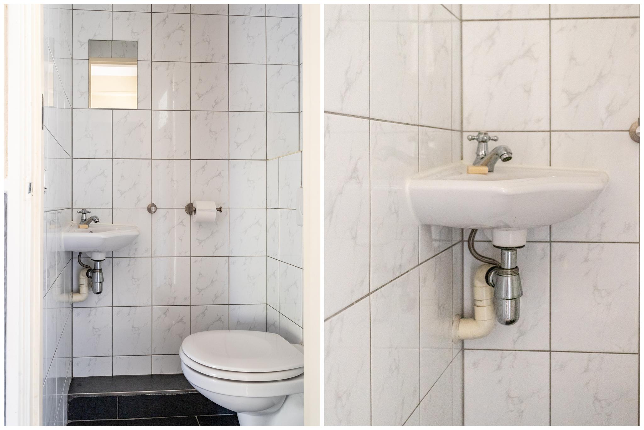 De tweede slaapkamer is gelegen aan de rustige achterzijde, voorzien van een vaste kast. Er is onder de vloerbedekking nog een nette laminaatvloer aanwezig.