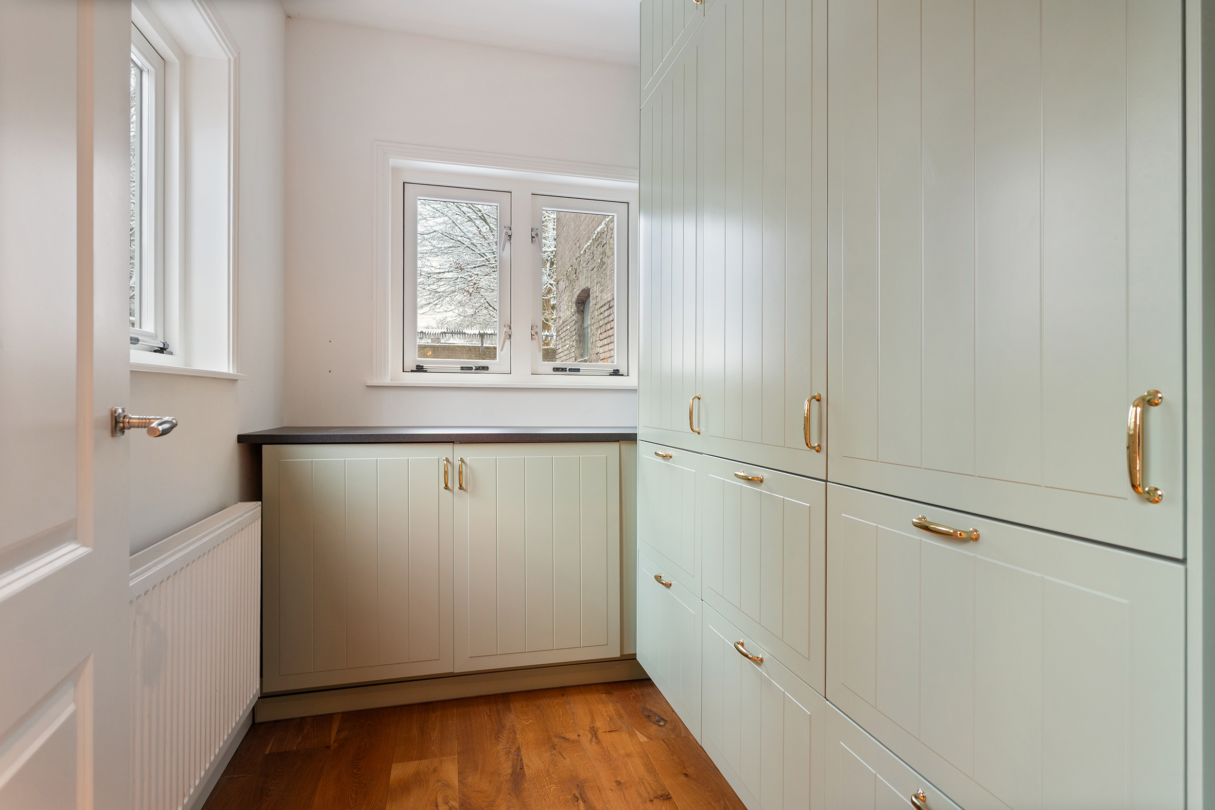 Aansluitend aan de keuken bevindt zich de bijkeuken. Deze ruimte is een echte luxe toevoeging: ideaal voor extra bergruimte of provisie. De bijkeuken is netjes afgewerkt en voorzien van maatwerk kasten, waardoor alles overzichtelijk en uit het zicht kan worden opgeborgen. Daarnaast is er een kleine extra vriezer aanwezig.