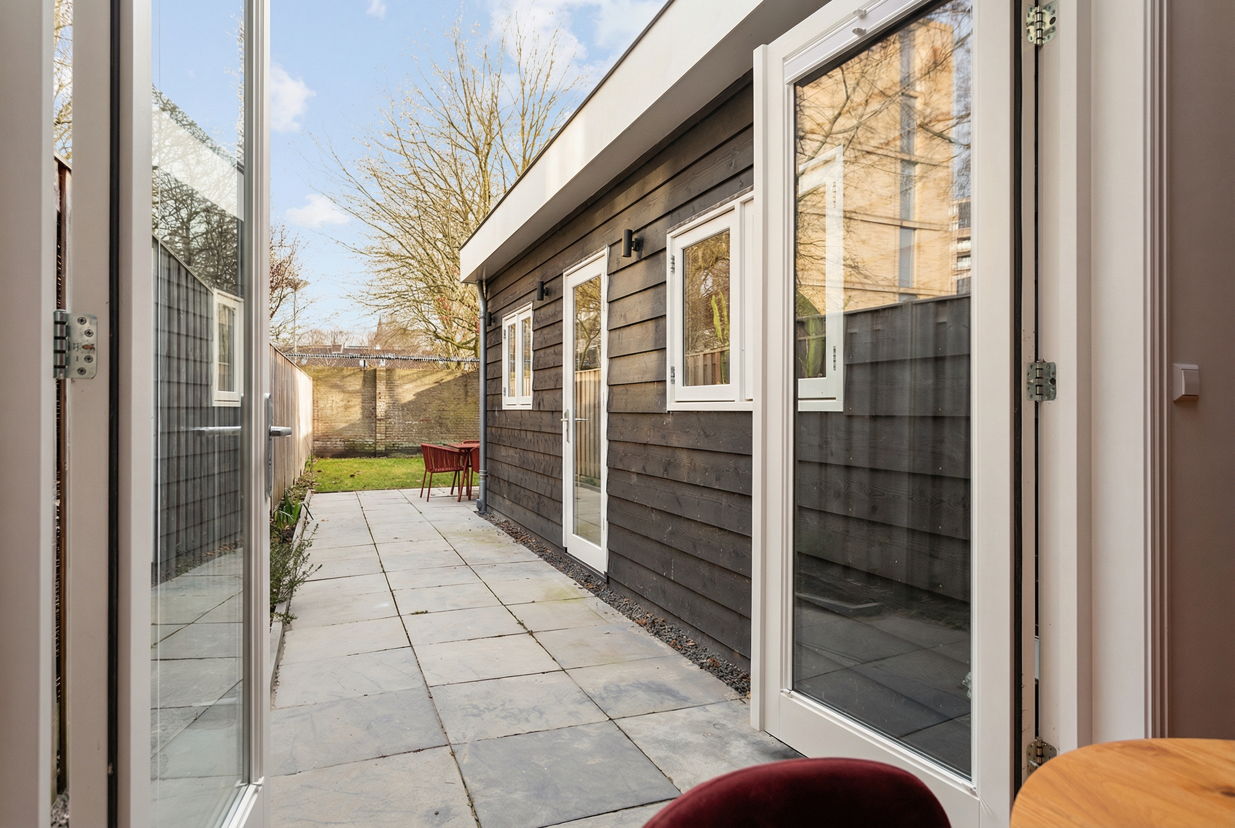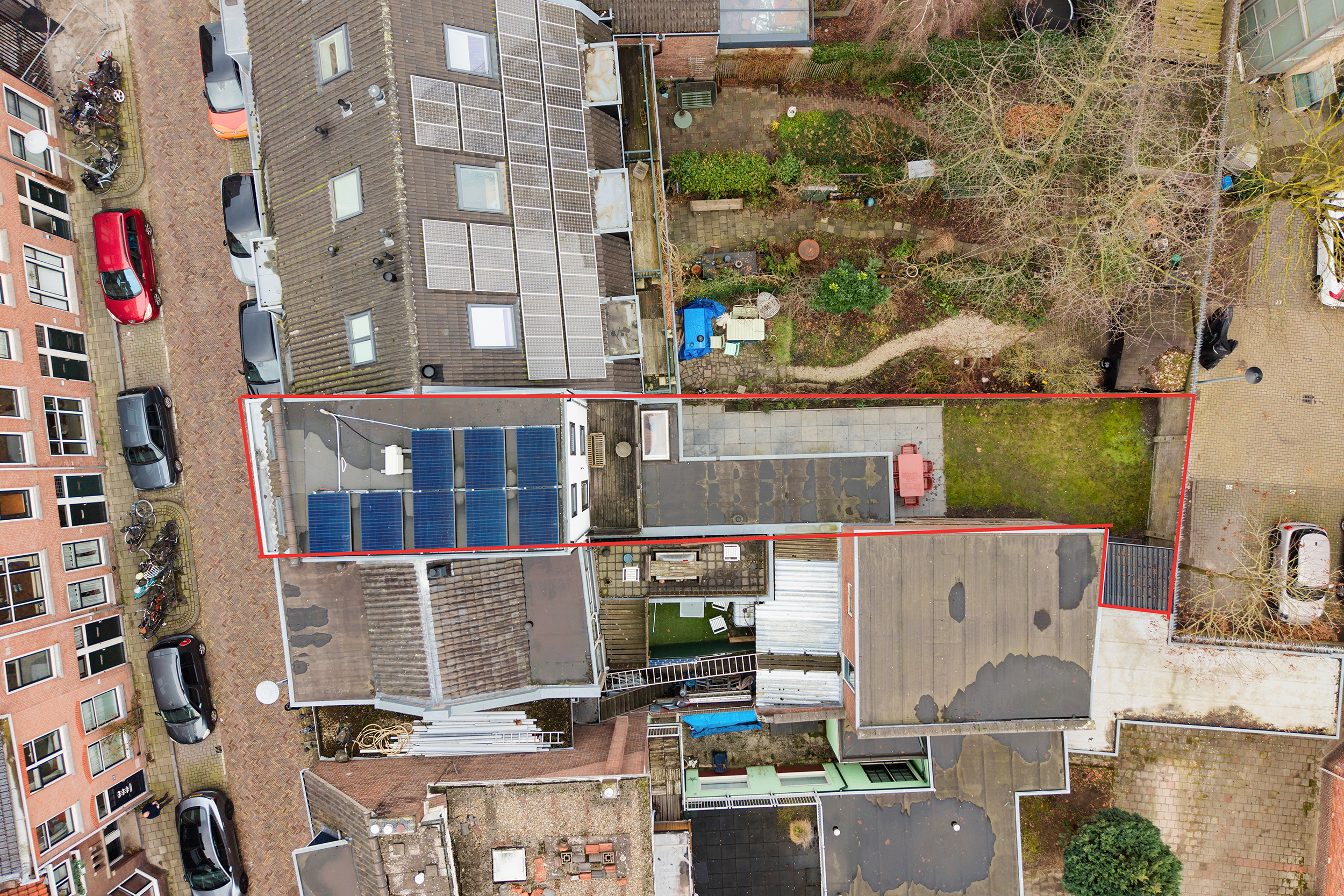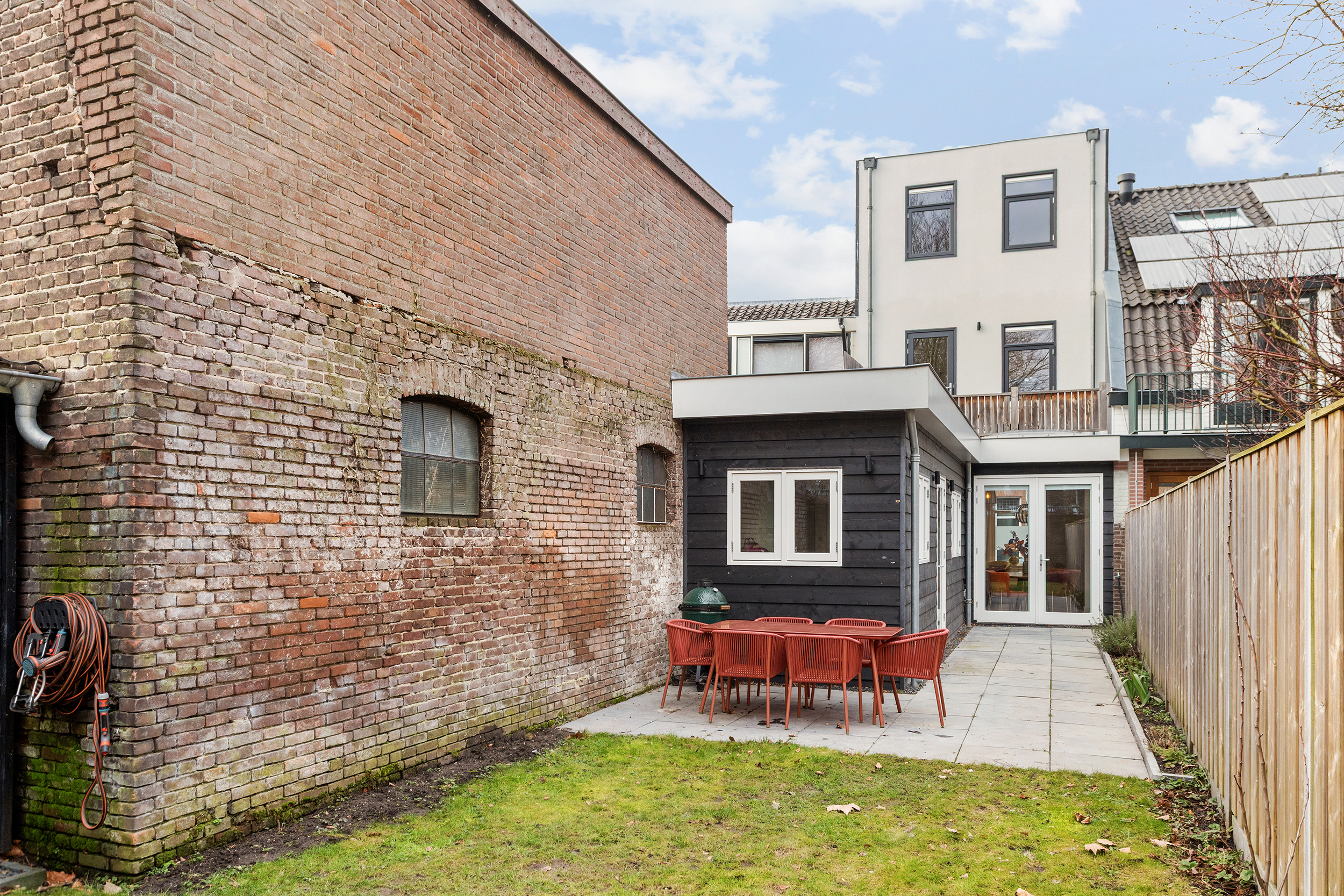 De buitenruimte is uitzonderlijk en maakt deze woning compleet. De royale achtertuin van circa 73 m² op het zuidoosten biedt een fijne mix van zon en schaduw en is een zeldzame luxe midden in de stad. Ruimte om te loungen, te tafelen en volop buiten te zijn. In de tuin staat een vrijstaande schuur, ideaal voor fietsen en extra opslag.