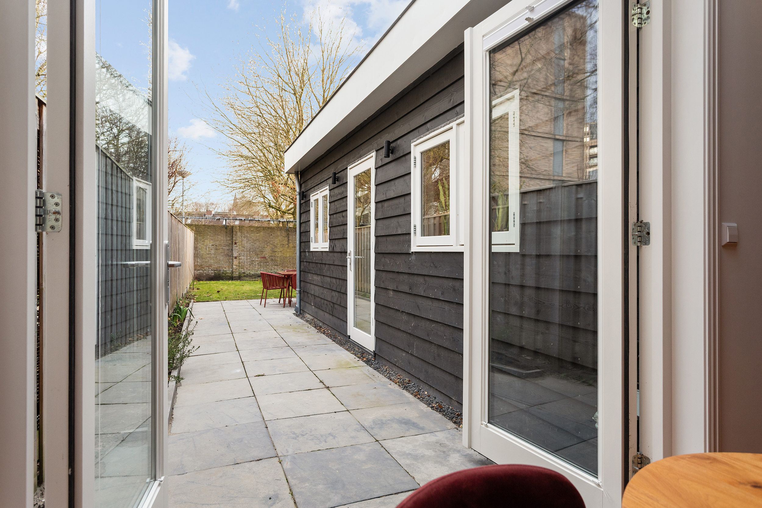 En dan de buitenruimte. De royale achtertuin van circa 73 m² op het zuidoosten is een absolute droom. Zon vanaf de ochtend tot in de middag, volop ruimte om te loungen, te tafelen en lange momenten buiten door te brengen, midden in de stad. En alsof dat nog niet genoeg is, beschikt de woning ook over een balkon waar je waar je eveneens heerlijk van de zon kunt genieten.
