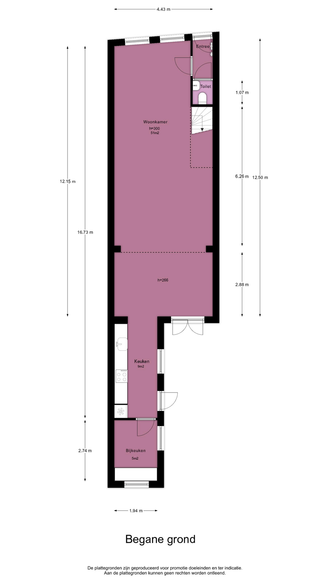 – Hoge plafonds van circa 3 meter op de begane grond;