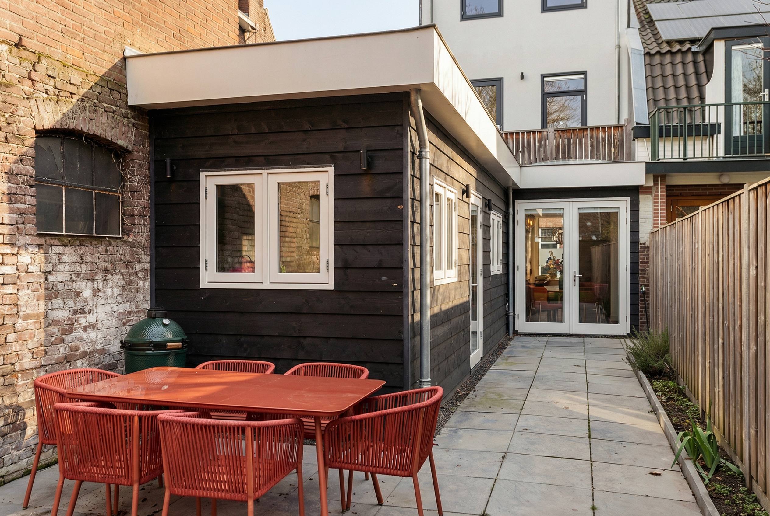 De woning beschikt daarnaast over een balkon op de eerste verdieping, eveneens gelegen op het zuidoosten — een heerlijke extra buitenplek om op verschillende momenten van de dag van de zon te genieten.