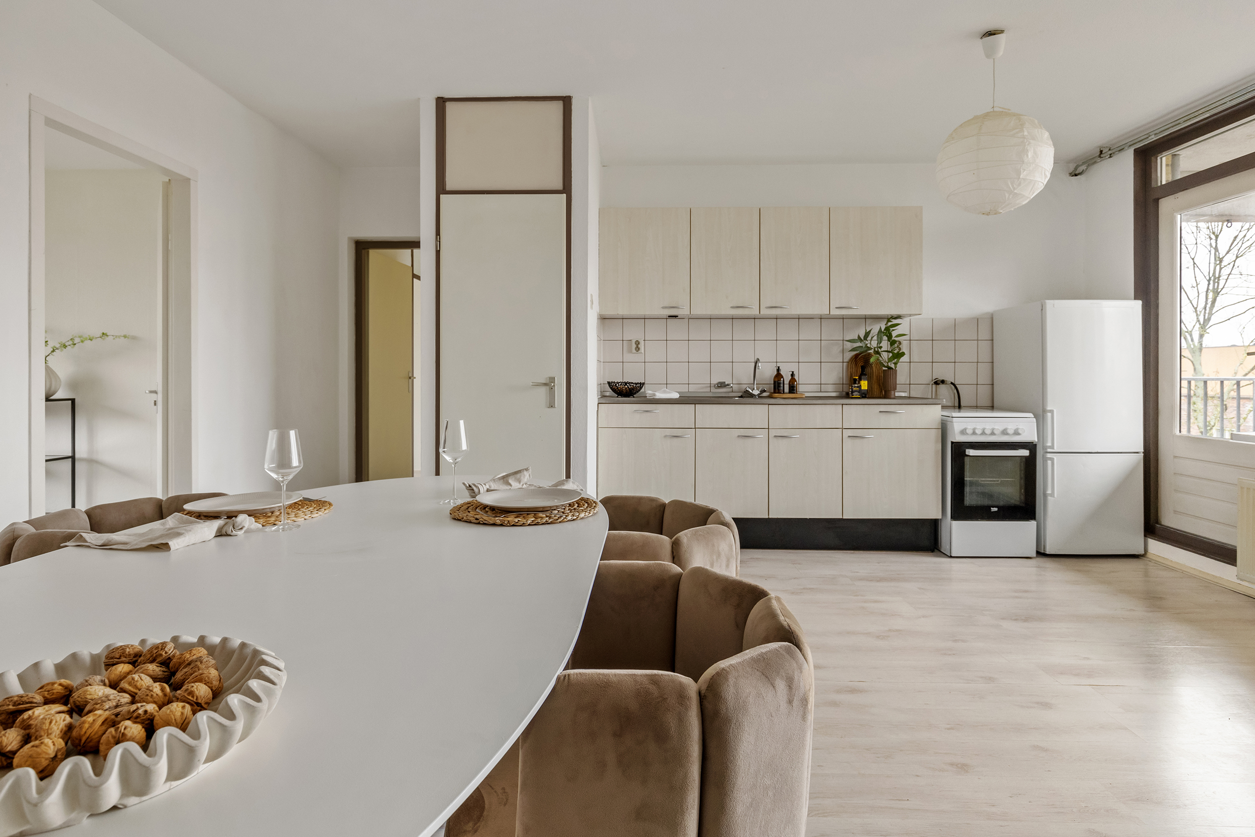Een groot pluspunt is de directe toegang tot het ruime balkon. In de zomermaanden zit je hier heerlijk met een hapje en een drankje, genietend van het groen en de rustige omgeving.