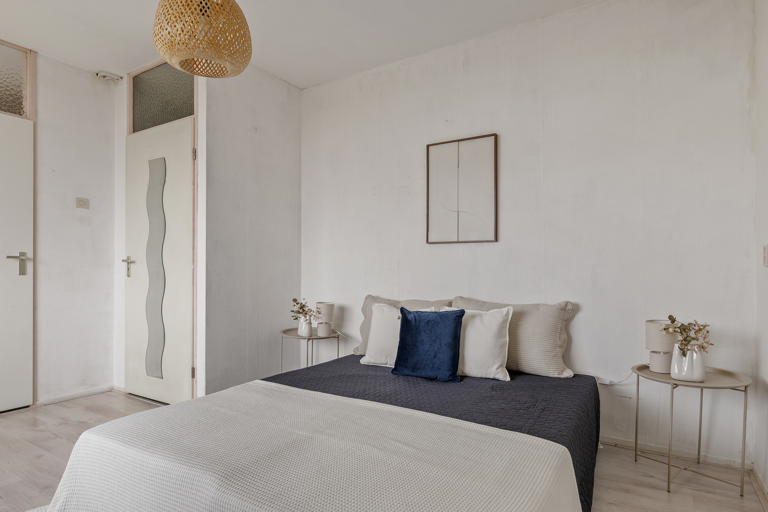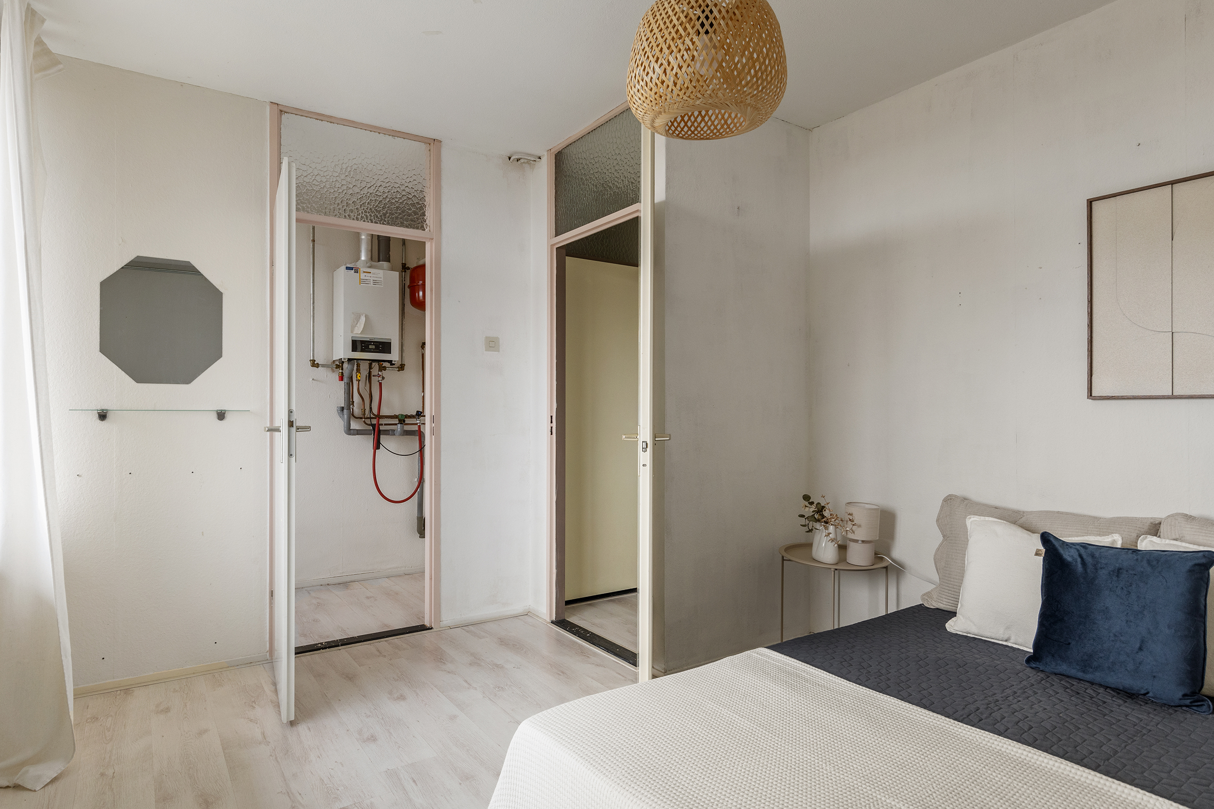 De woning beschikt over drie goed bemeten slaapkamers, alle bereikbaar via de gang die vanuit de woonkamer toegankelijk is. Elke kamer is aangenaam licht en biedt voldoende ruimte voor een tweepersoonsbed en een grote kastenwand. De slaapkamer aan de voorzijde beschikt bovendien over directe toegang tot een praktische berging van circa 3 m², ideaal voor extra opslag. Uiteraard zijn de kamers ook multifunctioneel in te delen, bijvoorbeeld als werk-, hobby- of logeerkamer.