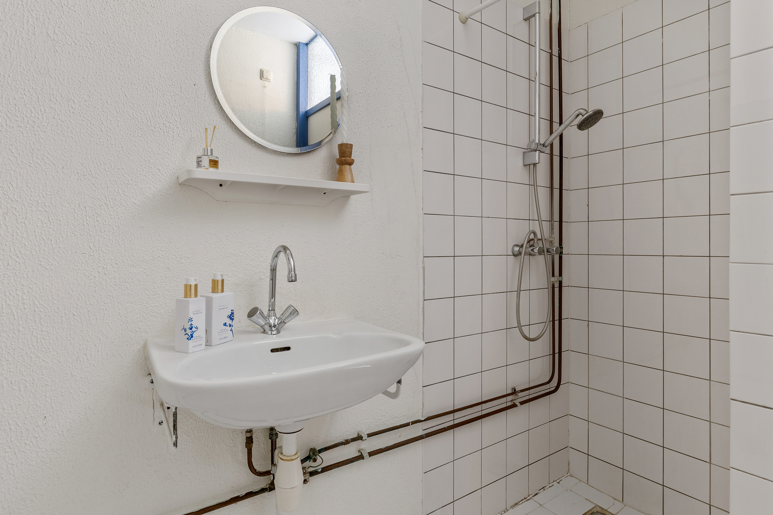 De woning beschikt over een badkamer en een separaat toilet. De badkamer is voorzien van een douche, wastafel en een aansluiting voor de wasmachine.