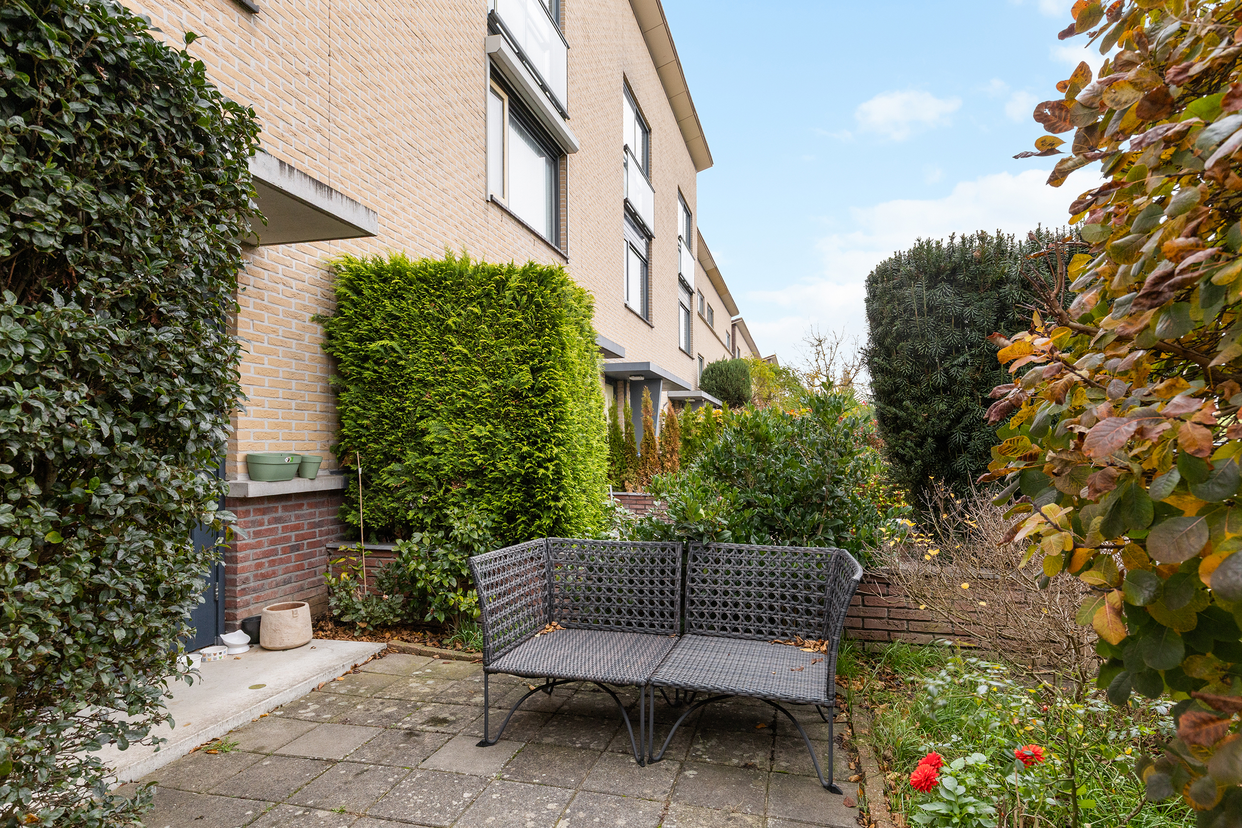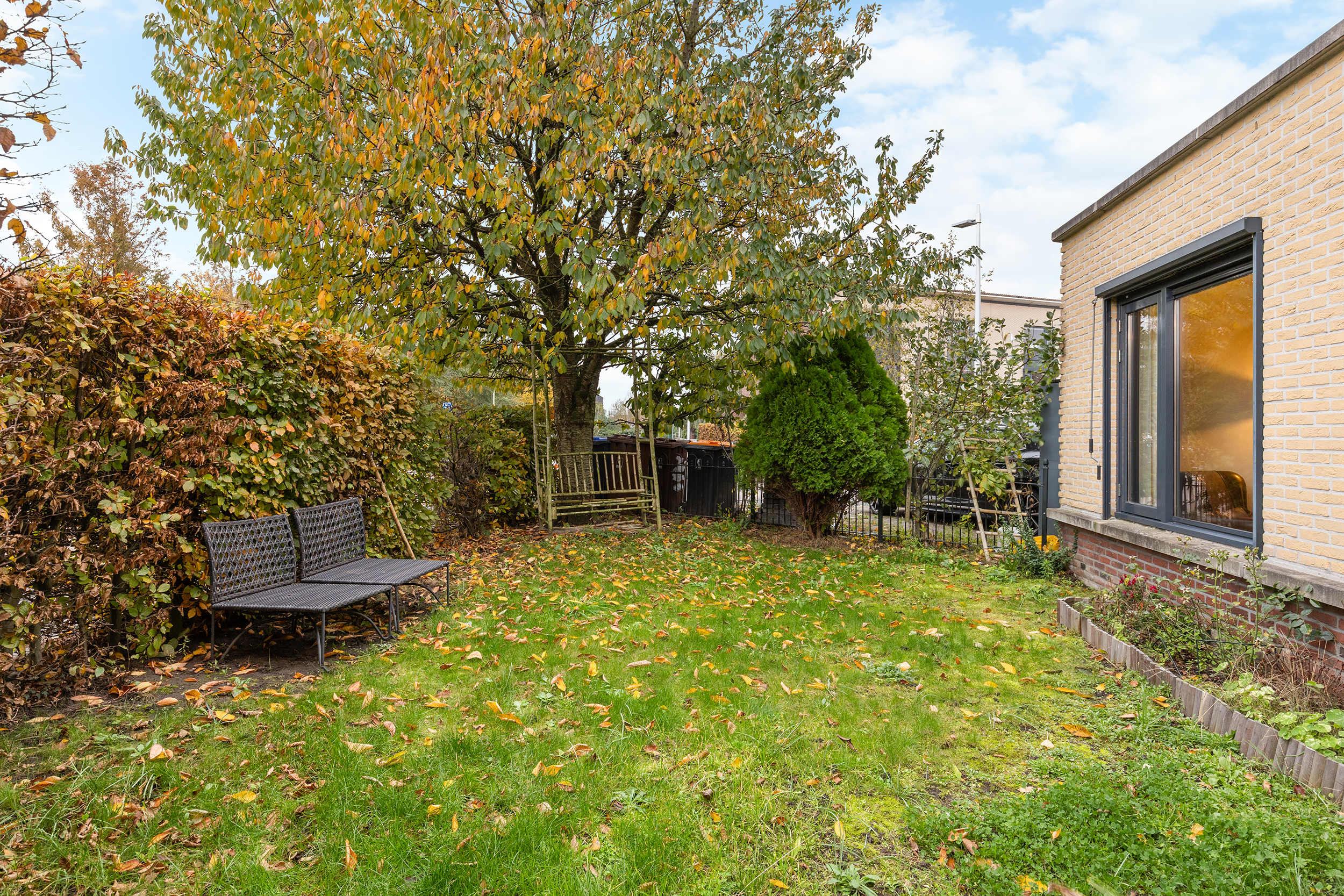 – Grote voortuin met veel privacy en meerdere zitplekken;
