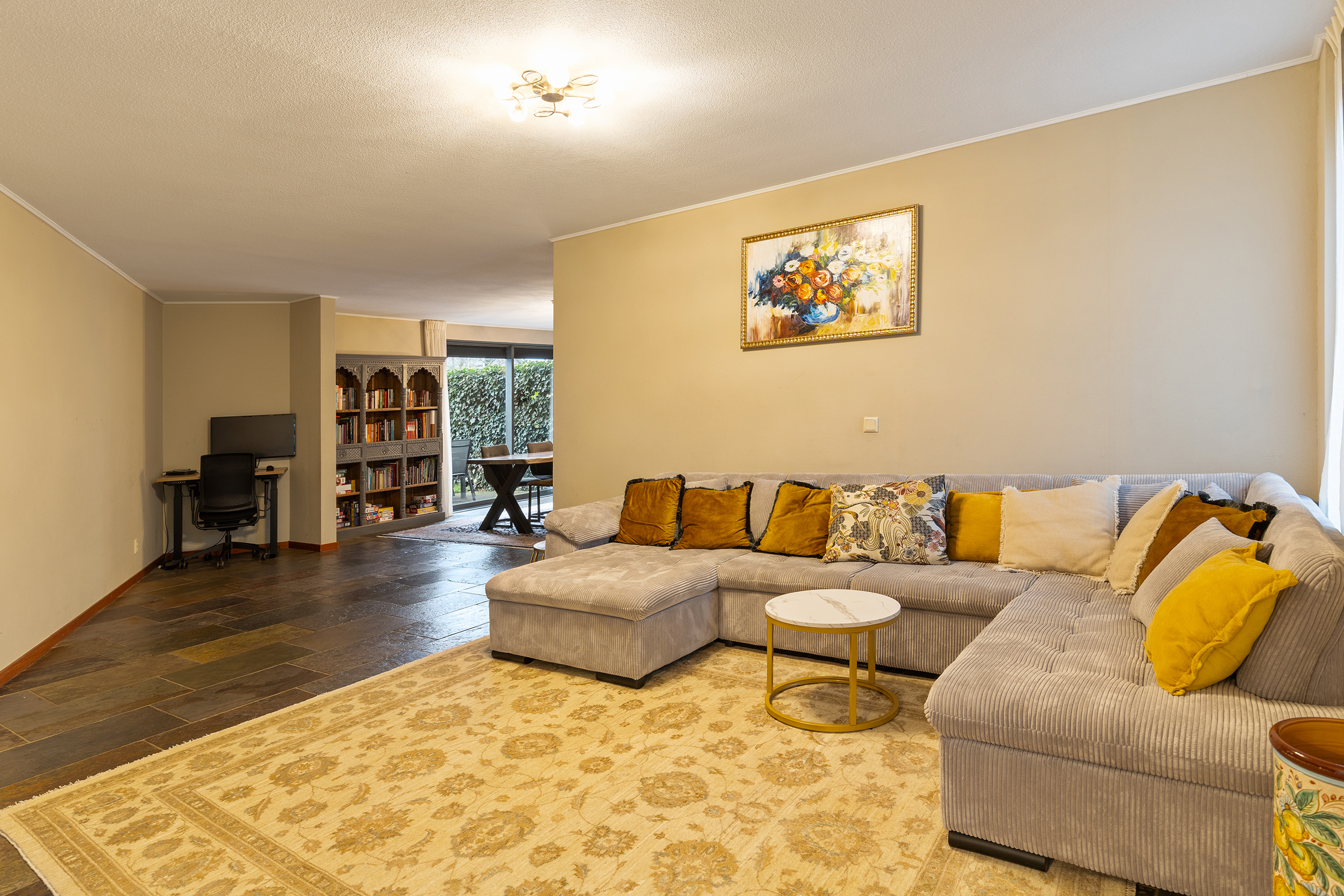 – Lichte woonkamer van ca. 50 m² met schuifpui naar de tuin;