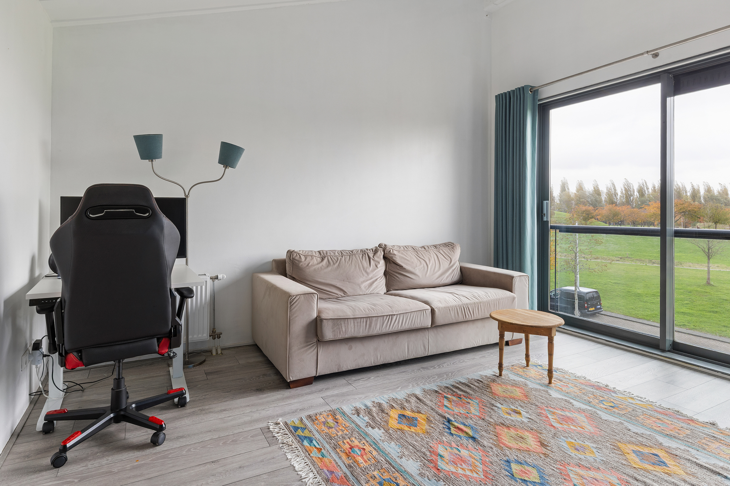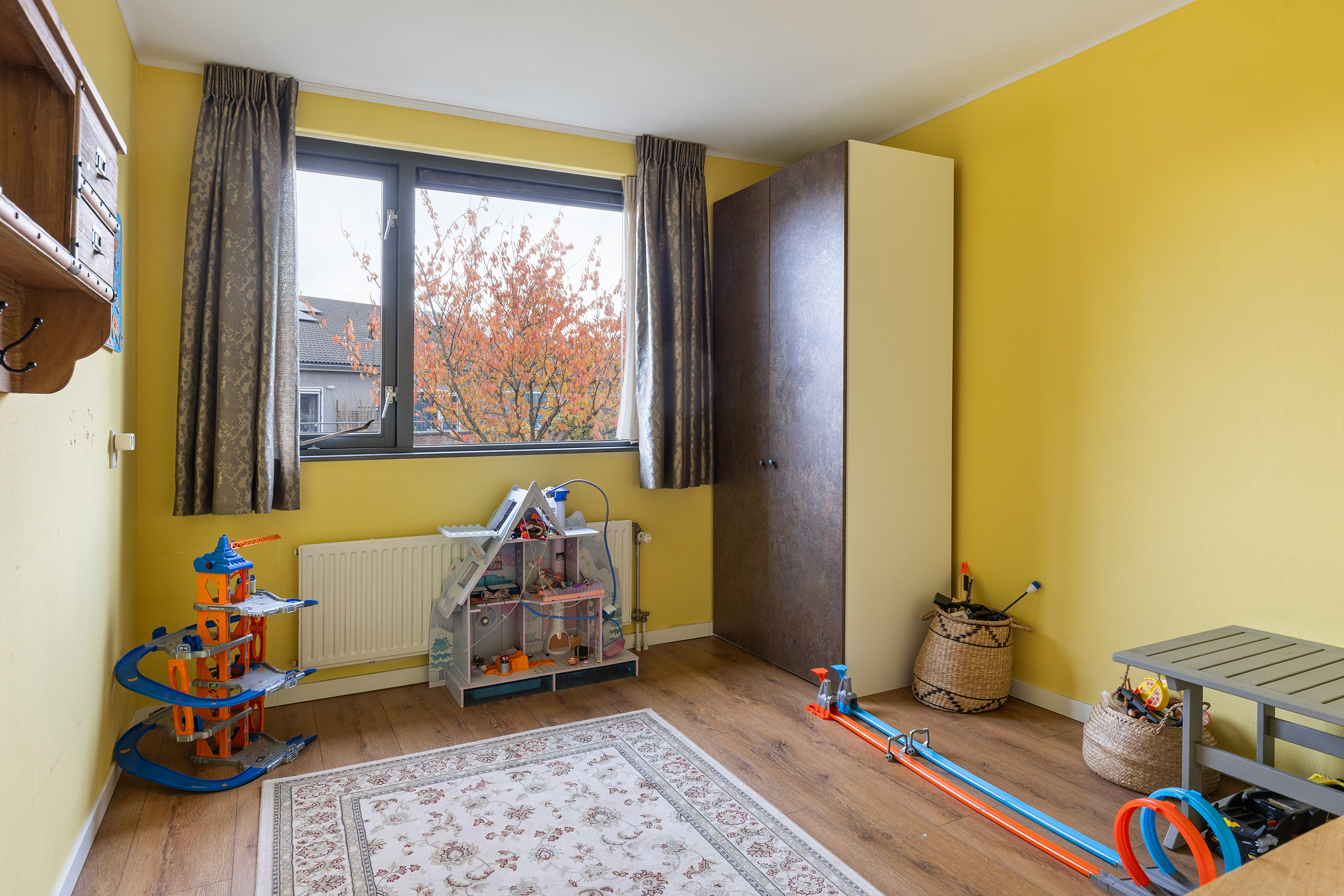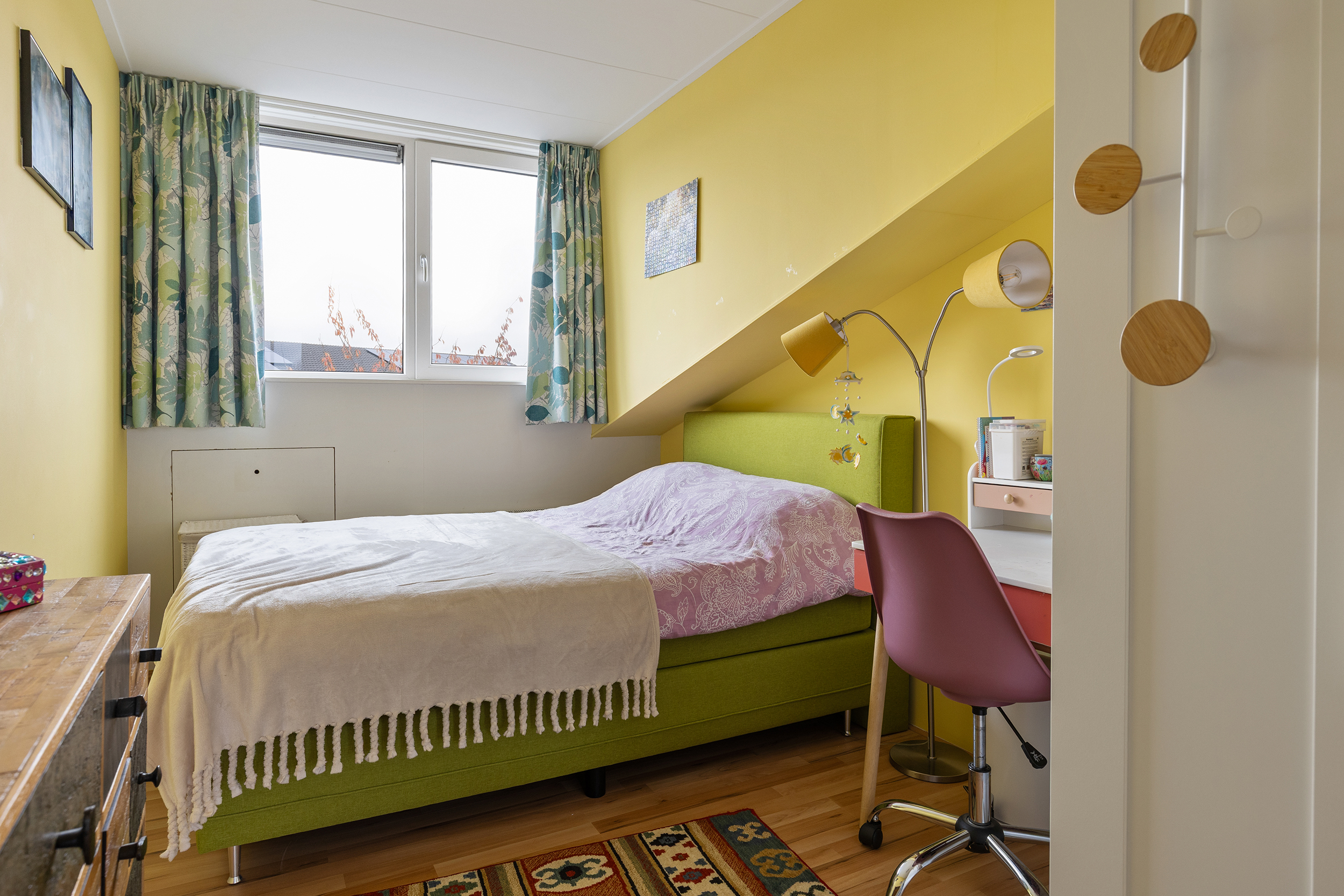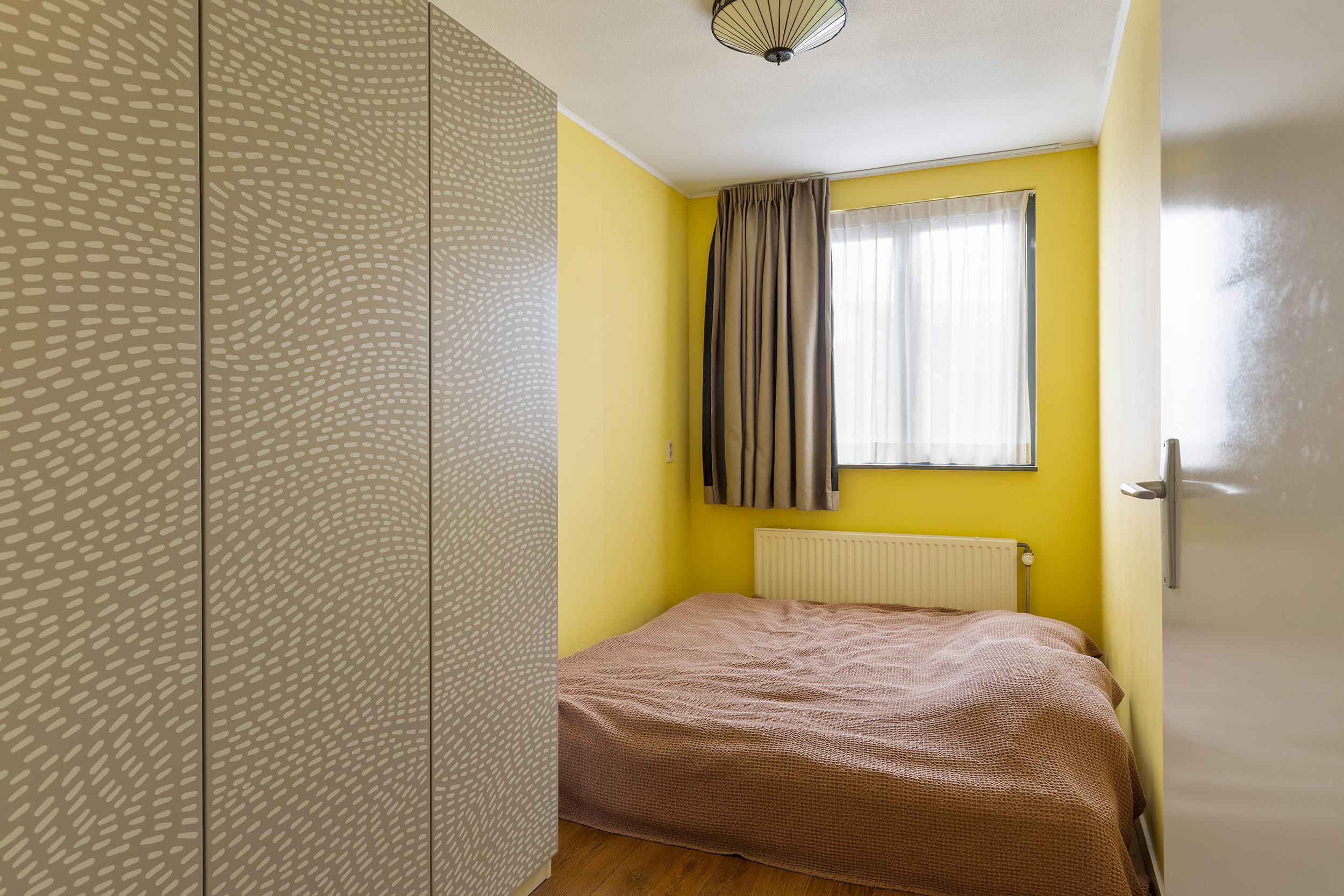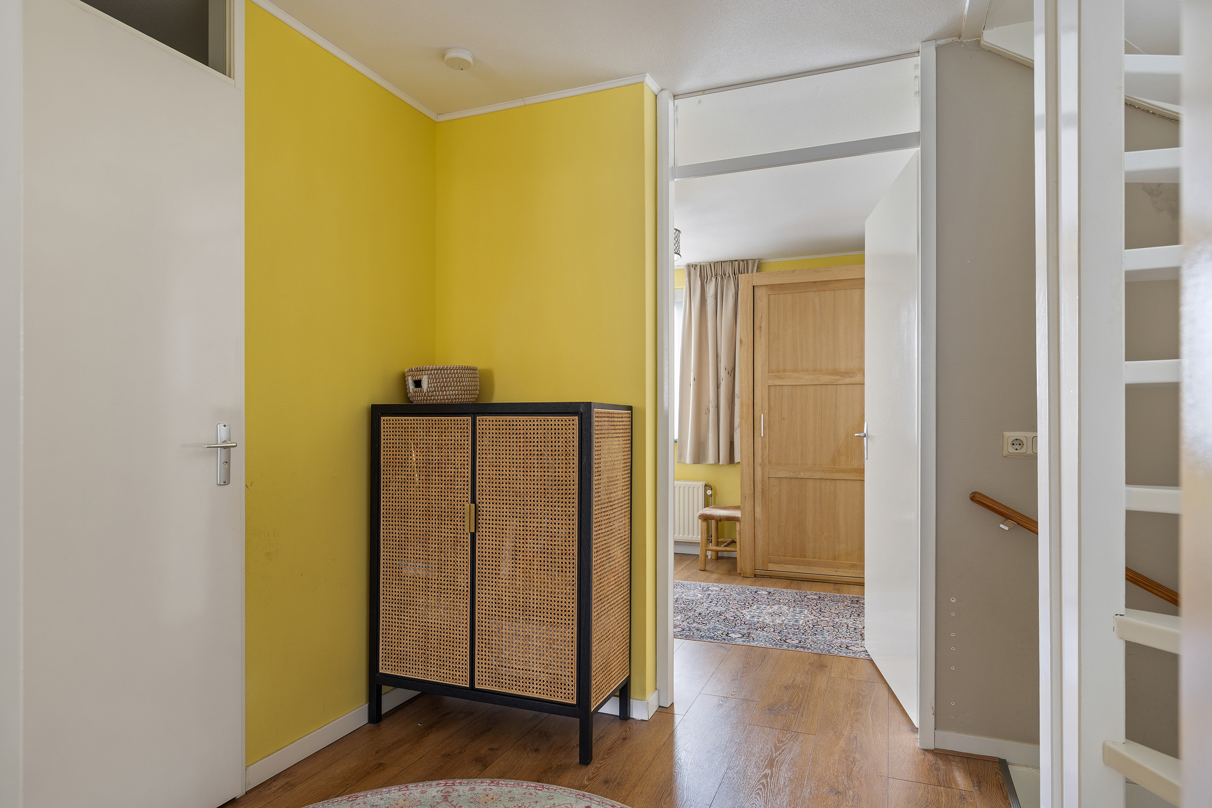 De tweede verdieping beschikt over drie slaapkamers en een tweede badkamer. De kamer aan de voorzijde springt direct in het oog: met een oppervlakte van circa 17 m² en een plafondhoogte van ruim 3,5 meter voelt deze ruimte bijzonder licht en ruim aan. Vanuit hier heb je een fraai uitzicht over het groene Park Hoge Weide. Boven deze kamer bevindt zich bovendien een entresol, perfect voor het opbergen van spullen die je niet dagelijks nodig hebt.
