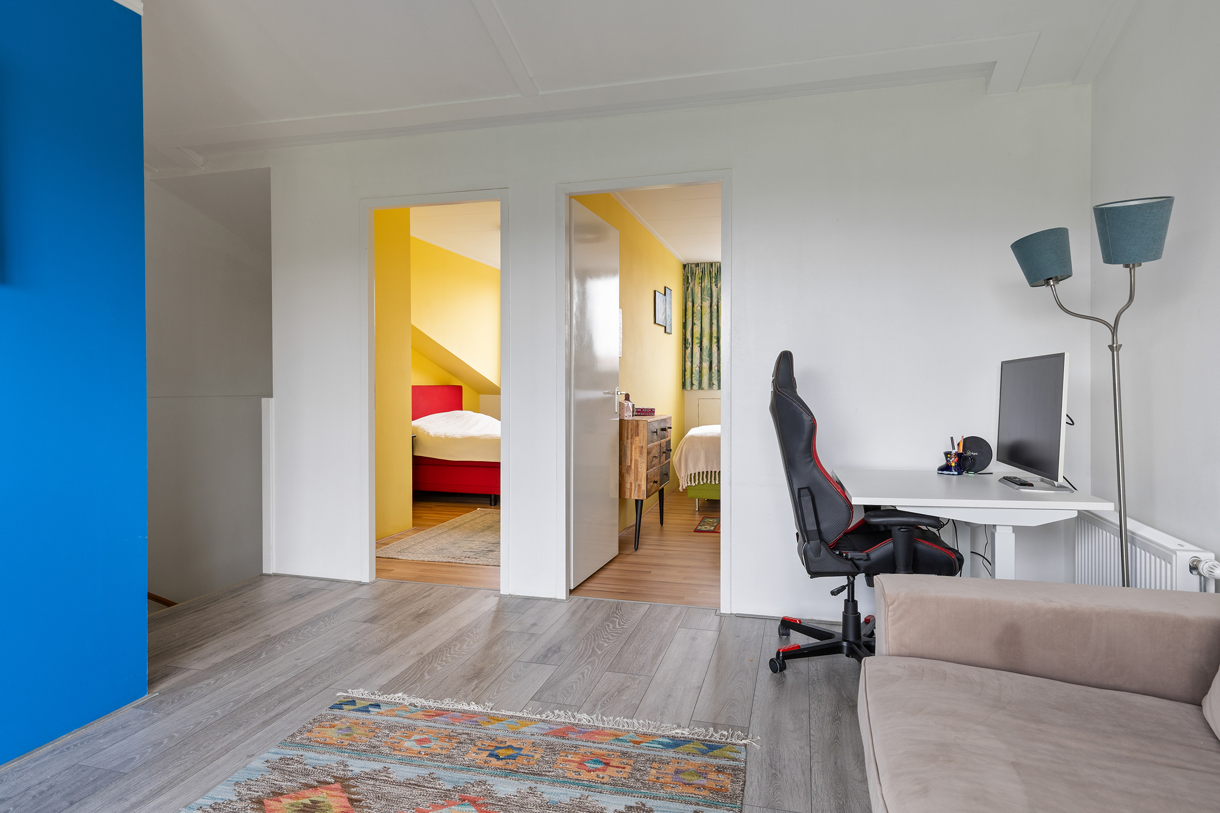 De eerste verdieping beschikt over drie goed bemeten slaapkamers en een moderne badkamer. De kamers zijn stuk voor stuk licht en praktisch in te delen, met voldoende ruimte voor een bed, kast en bureau.