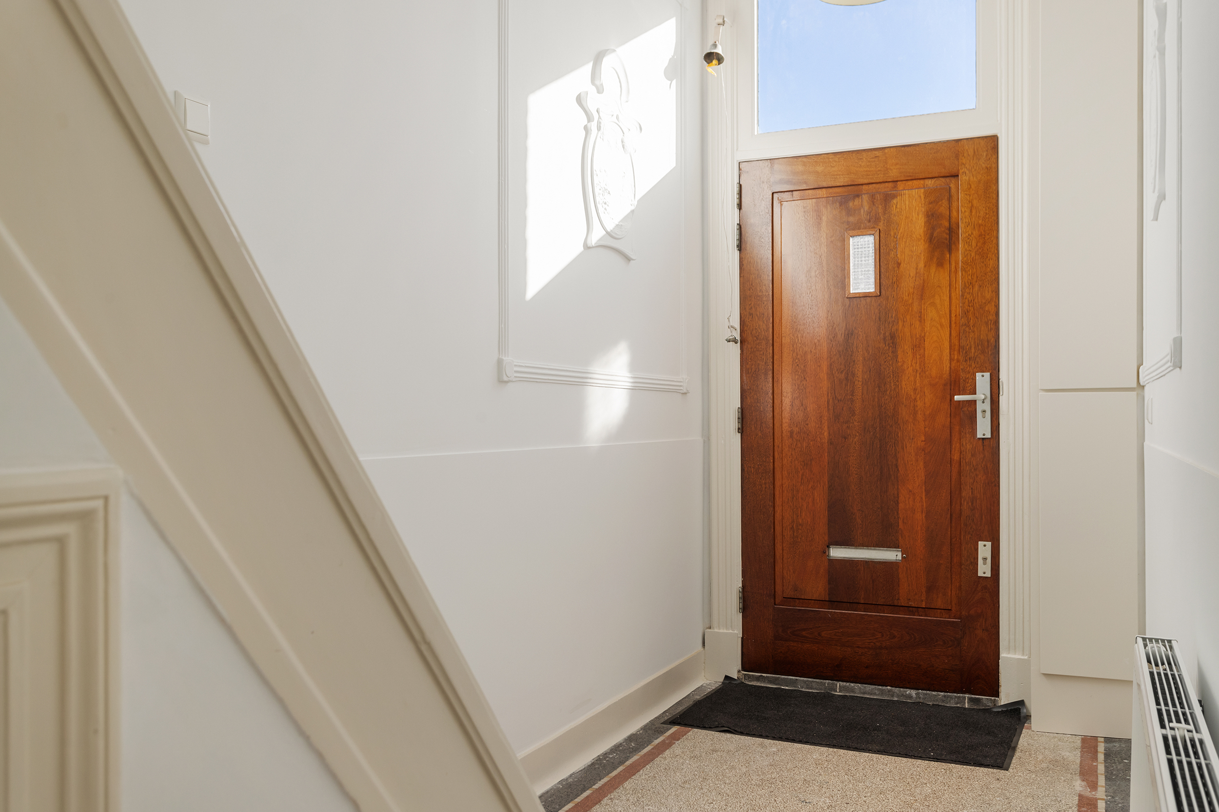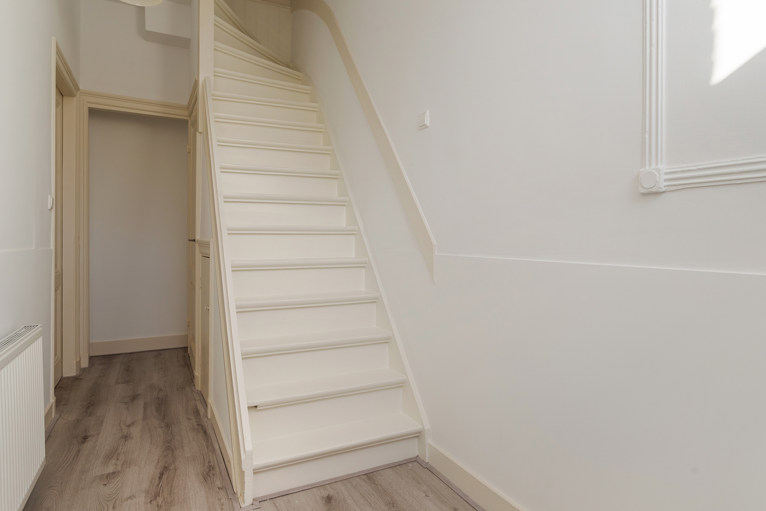 Je komt binnen in de hal met ruimte voor een garderobe en een praktische trapkast. Vanuit hier heb je toegang tot het toilet, de trap naar de eerste verdieping en de royale woonkamer.