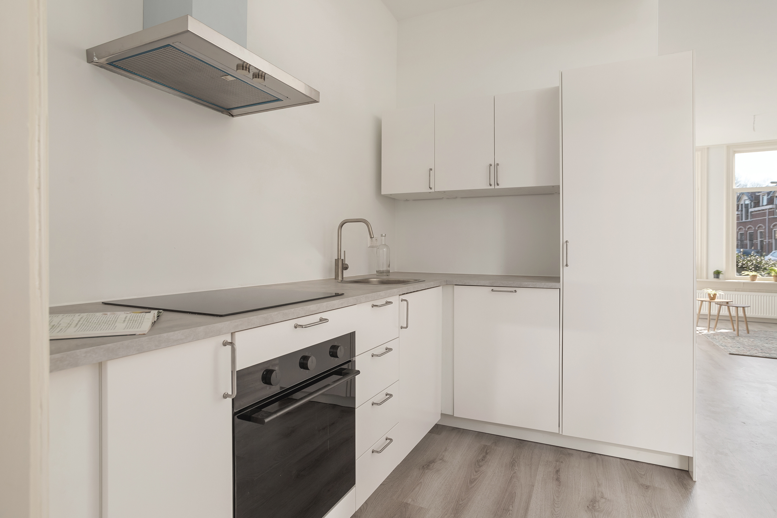 Aan de achterzijde bevindt zich de open keuken, geplaatst in februari 2026. De keuken is modern uitgevoerd en van alle gemakken voorzien. Je vindt hier alle benodigde inbouwapparatuur, gecombineerd met veel berg- en werkruimte. De stijlvolle afwerking sluit mooi aan bij de rest van de woonruimte en maakt het plaatje in de ruimte helemaal compleet.