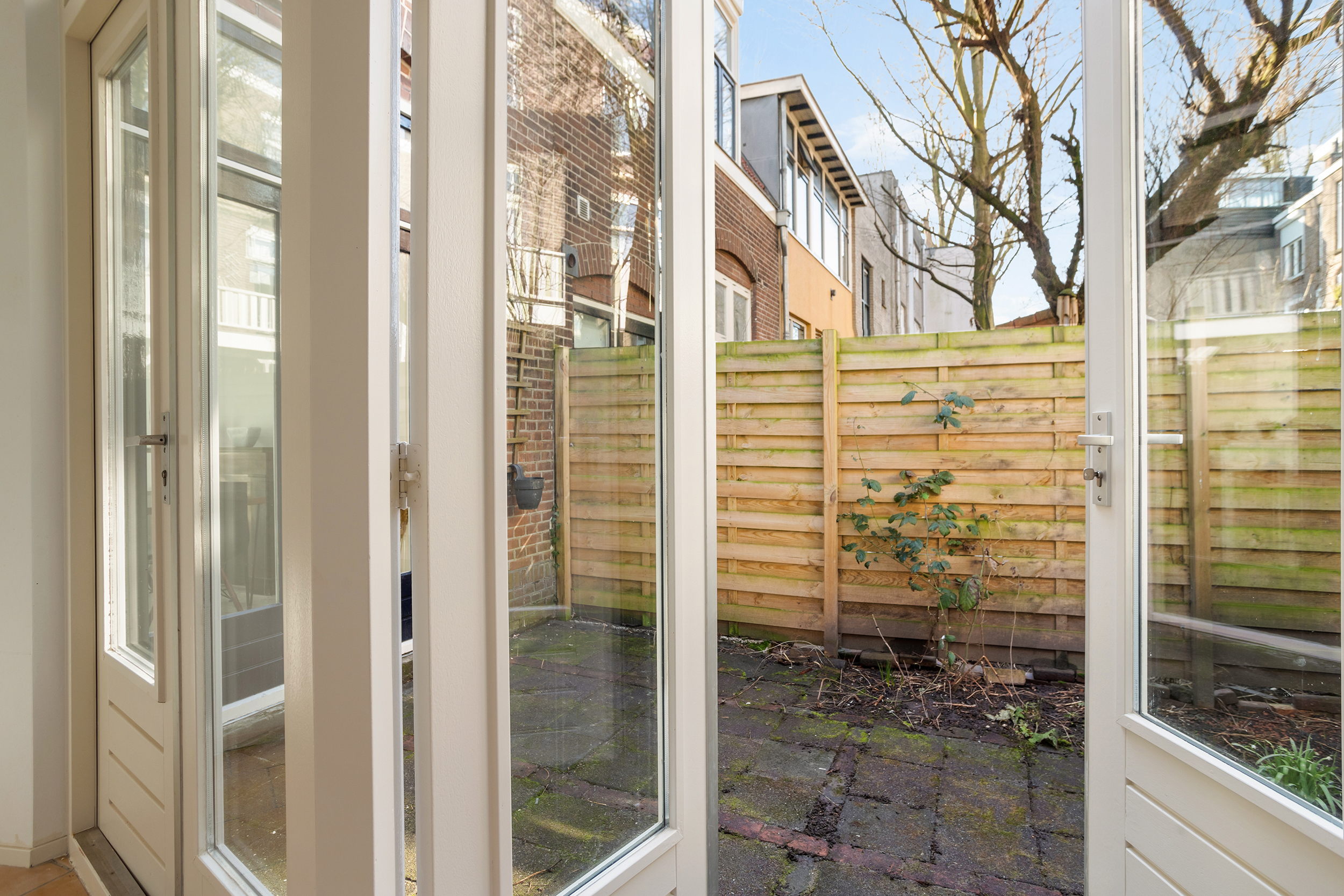 De tuin is gelegen op het westen, wat betekent dat je hier vanaf de middag tot in de avond heerlijk van de zon kunt genieten. Een fijne plek om na een werkdag nog even buiten te zitten of in het weekend uitgebreid te tafelen met vrienden. Achterin de tuin bevindt zich de praktische bergschuur, ideaal voor het opbergen van tuinspullen.