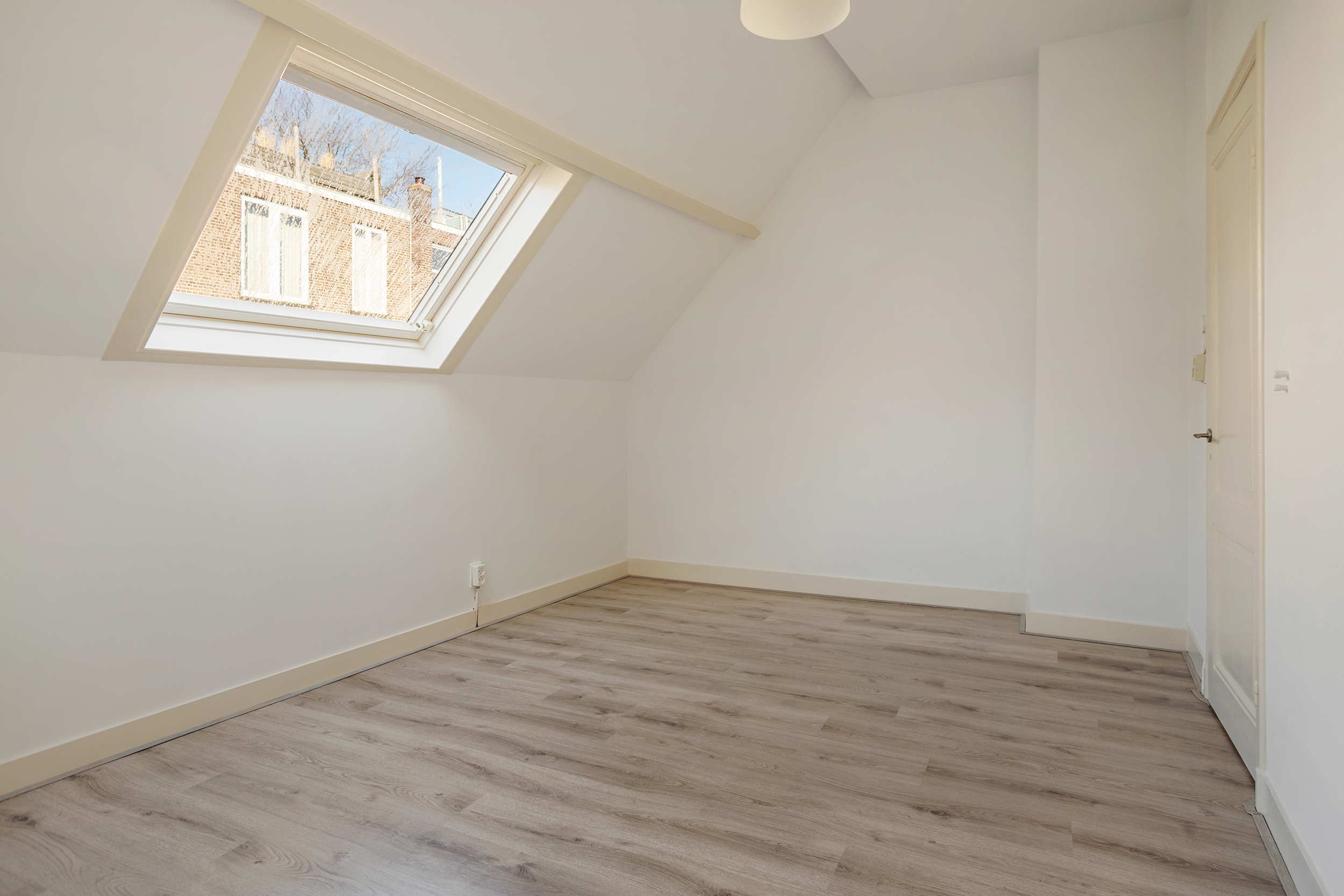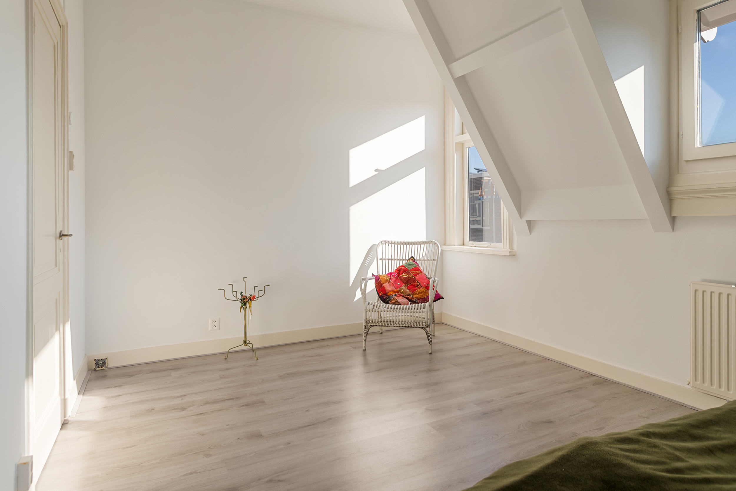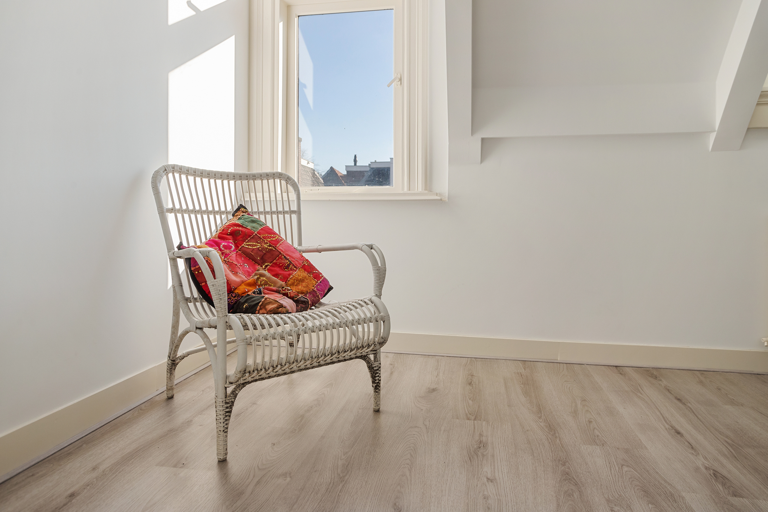 De overloop geeft toegang tot twee ruime slaapkamers en de badkamer. Beide kamers zijn prettig licht en bieden volop ruimte voor een comfortabel tweepersoonsbed en een grote kastenwand.