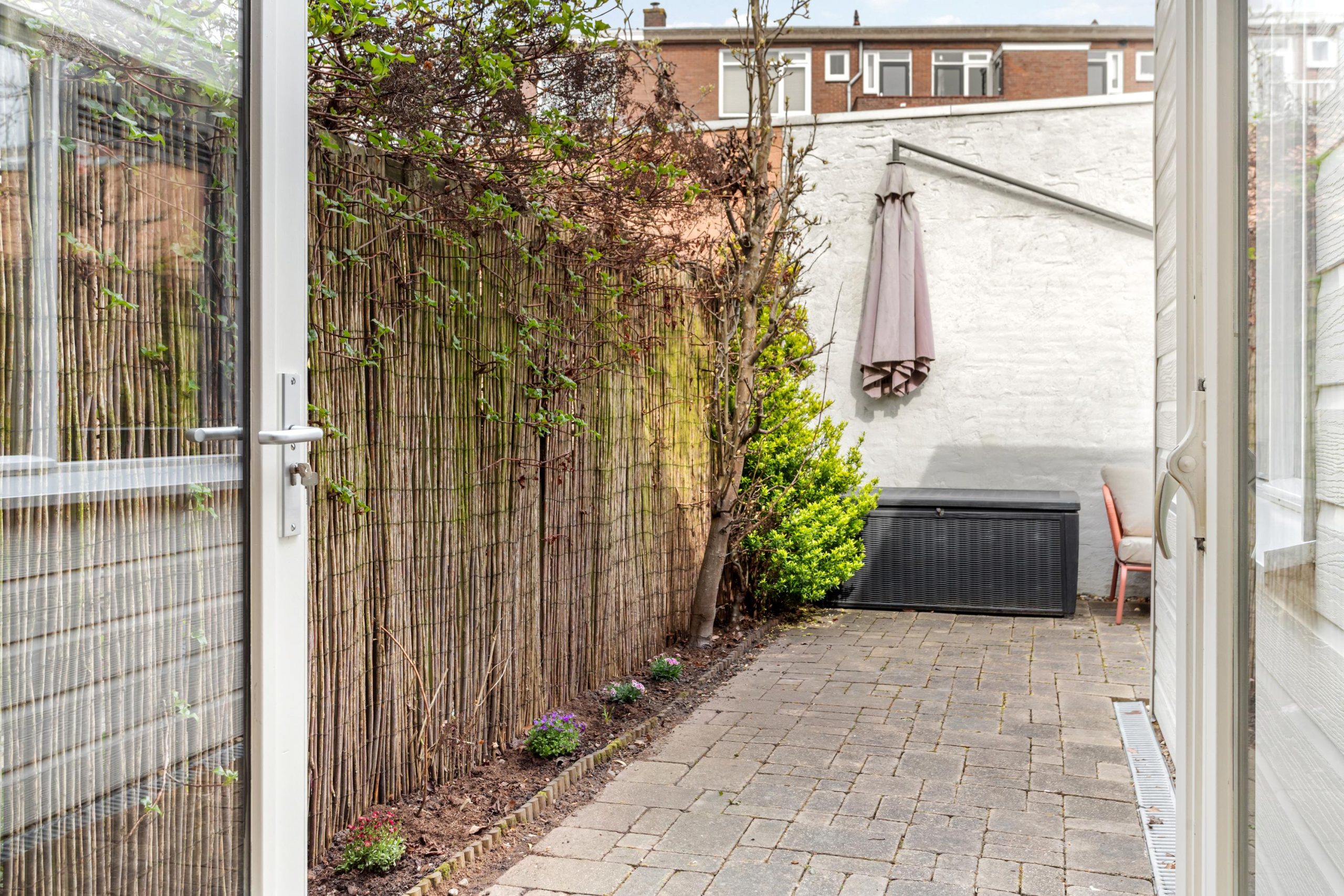 De achtertuin is verzorgd aangelegd en biedt een fijne, beschutte plek om buiten te zitten. Dankzij de ligging en de omliggende bebouwing voelt het hier rustig en privé, een prettige plek om even tot rust te komen na een drukke dag. Er is meer dan voldoende ruimte voor een heerlijke lounge hoek en een tuintafel, met lekker weer is dit dan ook dé plek om te vertoeven met een hapje en een drankje.