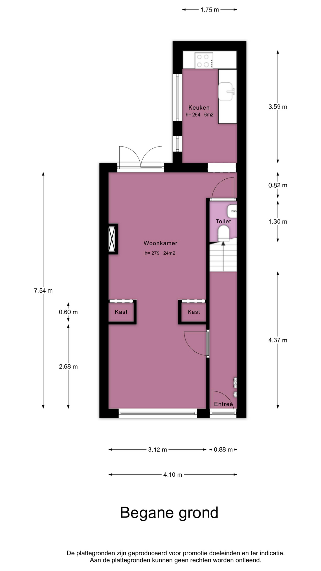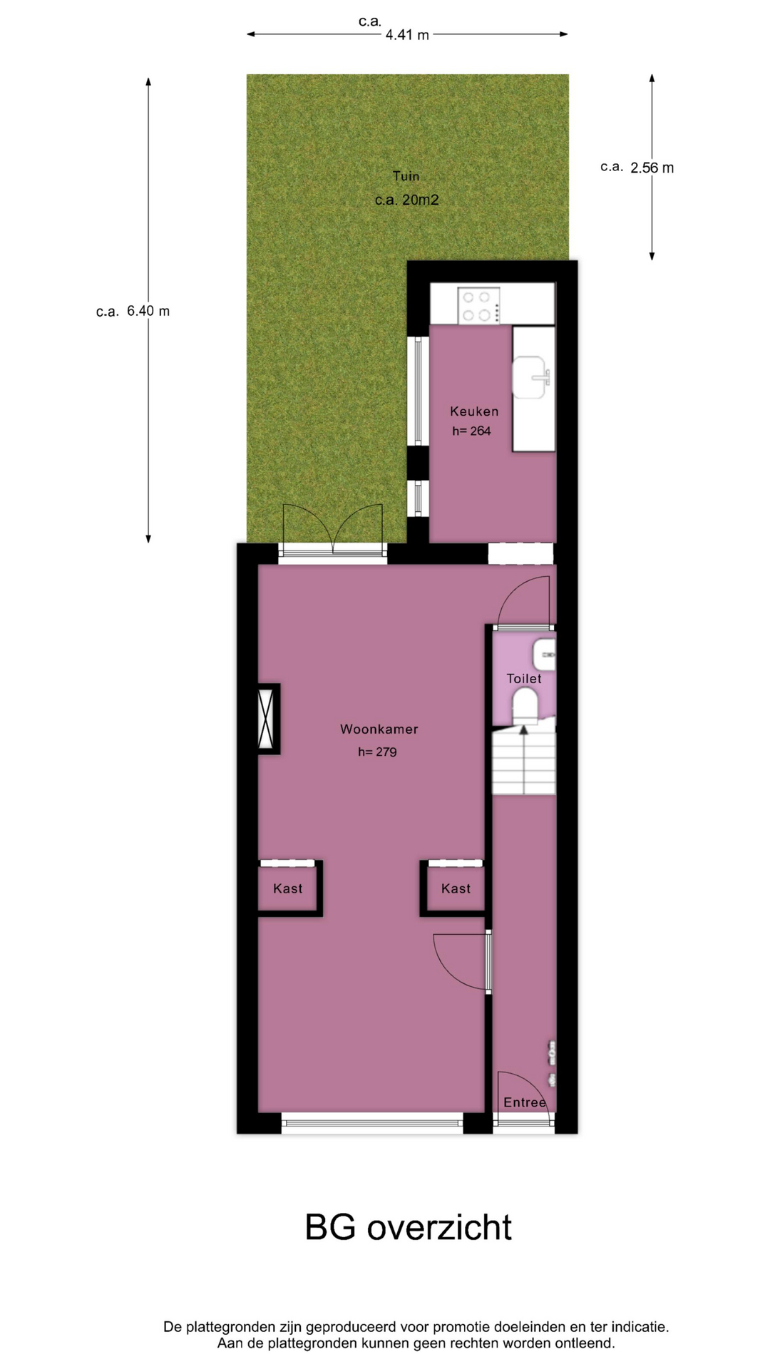 Je komt binnen in de gang met ruimte voor een garderobe en toegang tot het toilet en de woonkamer.